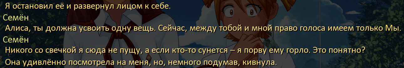Кстати играл в достойные моды где Пионер или сумасшедший Семён достойно отыгрывают роль маньяков или бывших маньяков. Очень интересно было читать. Не оправдываю вырезание куколок конечно же.