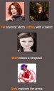>Фелиша сурово разрезает Джоффри на кусочки своим мечом.