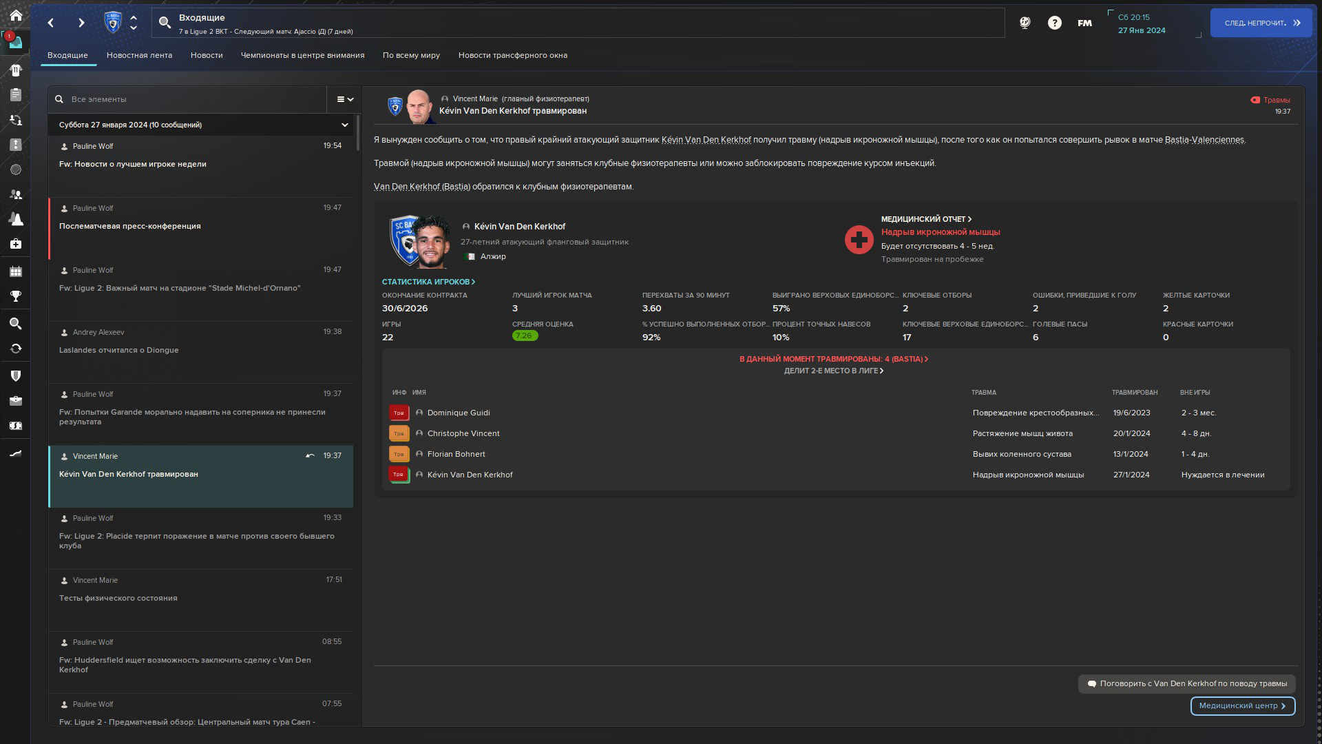У меня в Байере был чудо-мальчик в опорной зоне через которого вся игра шла, усадил суперстарого капитана Джаку в резерв, перед решающими матчами весной Джака на тренировке ломает этого мальчика на несколько месяцев, мы проигрываем все турниры.