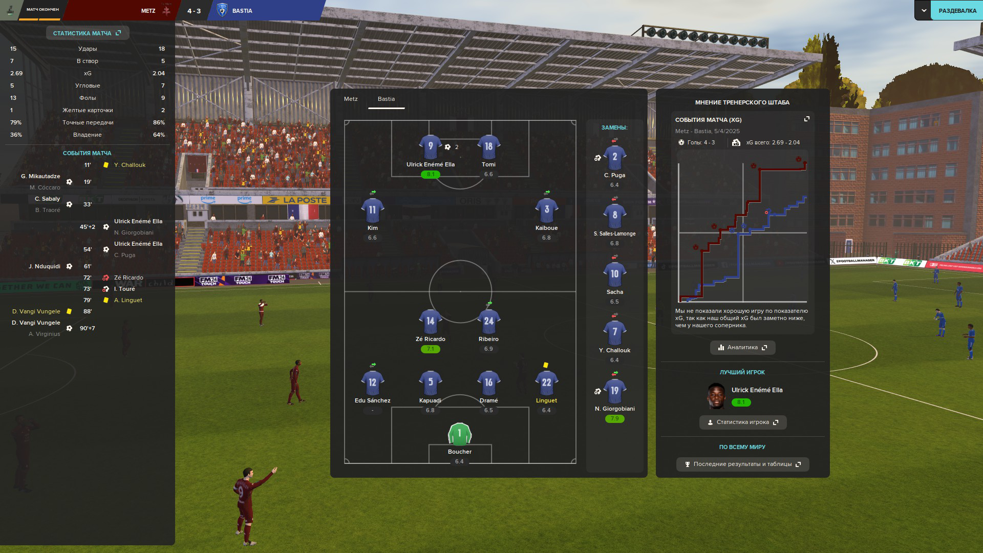 Но я по итогу доволен и командой, показавшей характер, и собой за проведенные перестановки, позволившие нам камбекнуть.