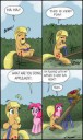 Я хотел сказать, что обычные пони действительно родились на фермах. Только посмотри на семью Эпплов, там все земнопони.