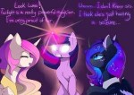 Да, это Селестия и Луна. Но они такие страшные, что кто-то из них точно кровосос. Понимаешь, такие ситуации, когда вроде всё хорошо и безмятежно, вызывают у прожжёных любителей маслин только подозрения.