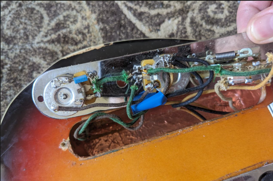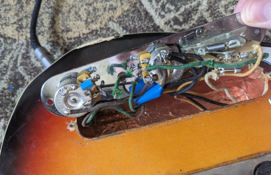 > Поэтому я просто взял и засунул батарейку между корпусом гитары и внутренней частью бриджа