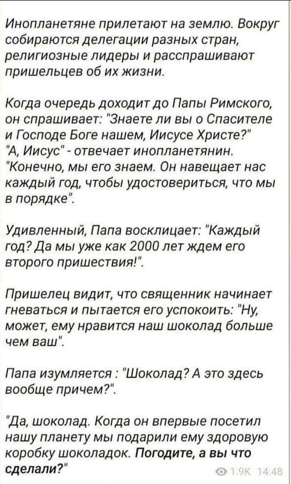 Анекдот (смеялись всем монашеским орденом):