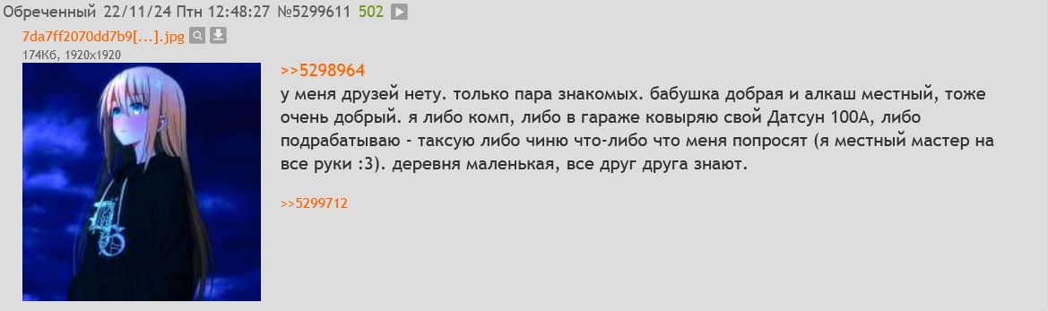 То есть буквально и литературно ситуация у почти каждого посетителя этой доски, кроме каникулярных нормисов и залетух по баннеру?