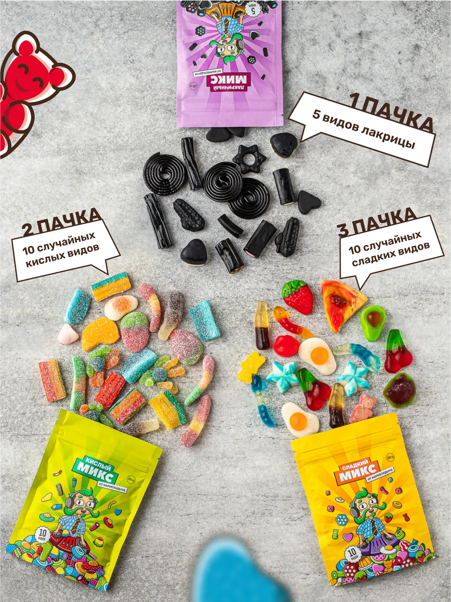 Я наборы от мармеладыча брал пока скидки проверь если скидки остались ты можешь набор взять маленький там и кислючки и сладкие и лакрички