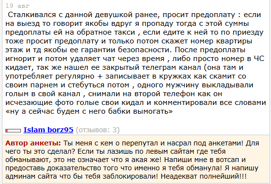 Ну видимо ее поведение, скуфам не нравилось. А мне прям кайфово было, был у нее дважды, ходил бы еще но она выкатилась. Теперь наверное еще раз к ней схожу если она не выкатится