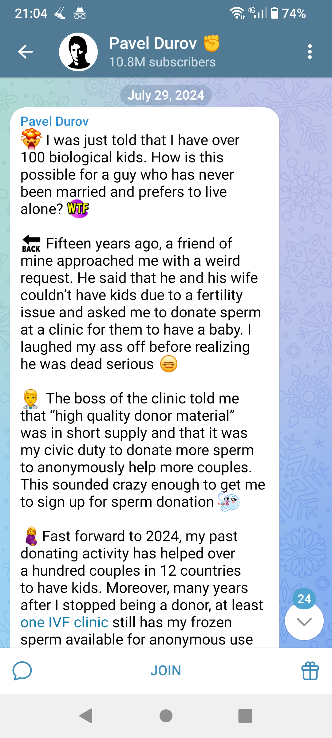Сам бы нашёл матку-суррогатку, если бы просто хотел наследника. Но у меня дети вообще не вызывают эмоций, поэтому я просто удивляюсь анонам, которые их хотят. Без негатива.