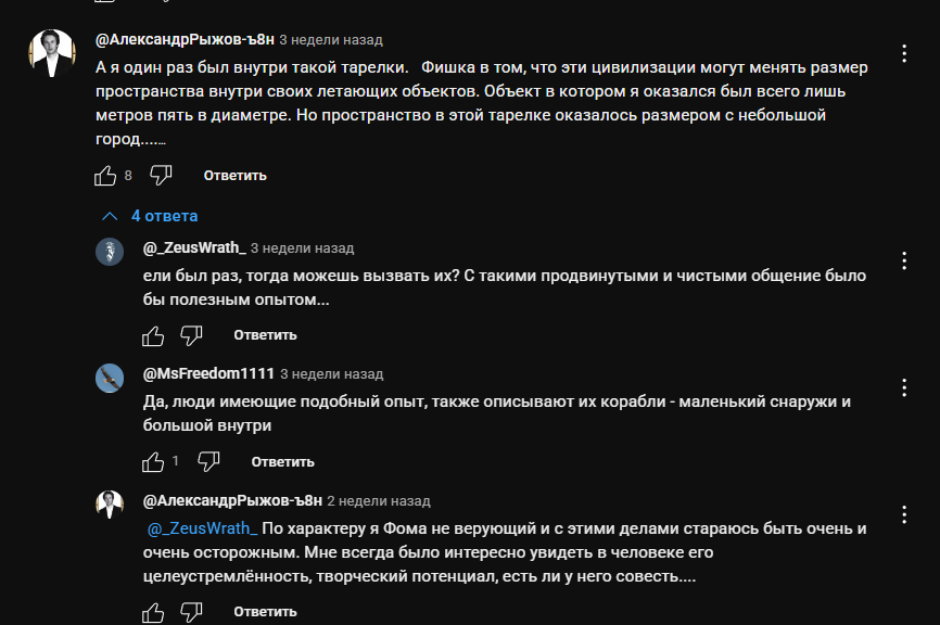Типичная ошибка: на самом деле ты не знаешь кто тут сидит. А если половина сообщений от шиза, то вполне может быть от одного(скорее всего так и есть). Что известно нам, реалистично мыслящим людям: НЛО есть, мифология людбого древнего нароода содержит элементы похожие на контакты и прогрессорство, существуют вредные воздействия самих НЛО которые зафиксированы медицински, есть феномен похищения, но его трудно изучать. Если обсуждать исключительно это, то окажется что постить нечего, а шизам всегда есть что запостить, вот и возникает дисбаланс.