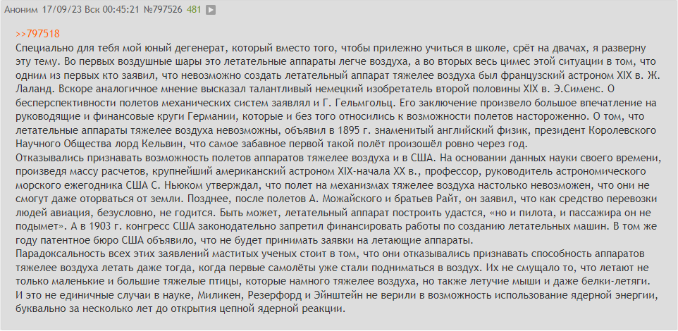 Чел, они отрицали возможность полета самолета, за год до первого их полета.