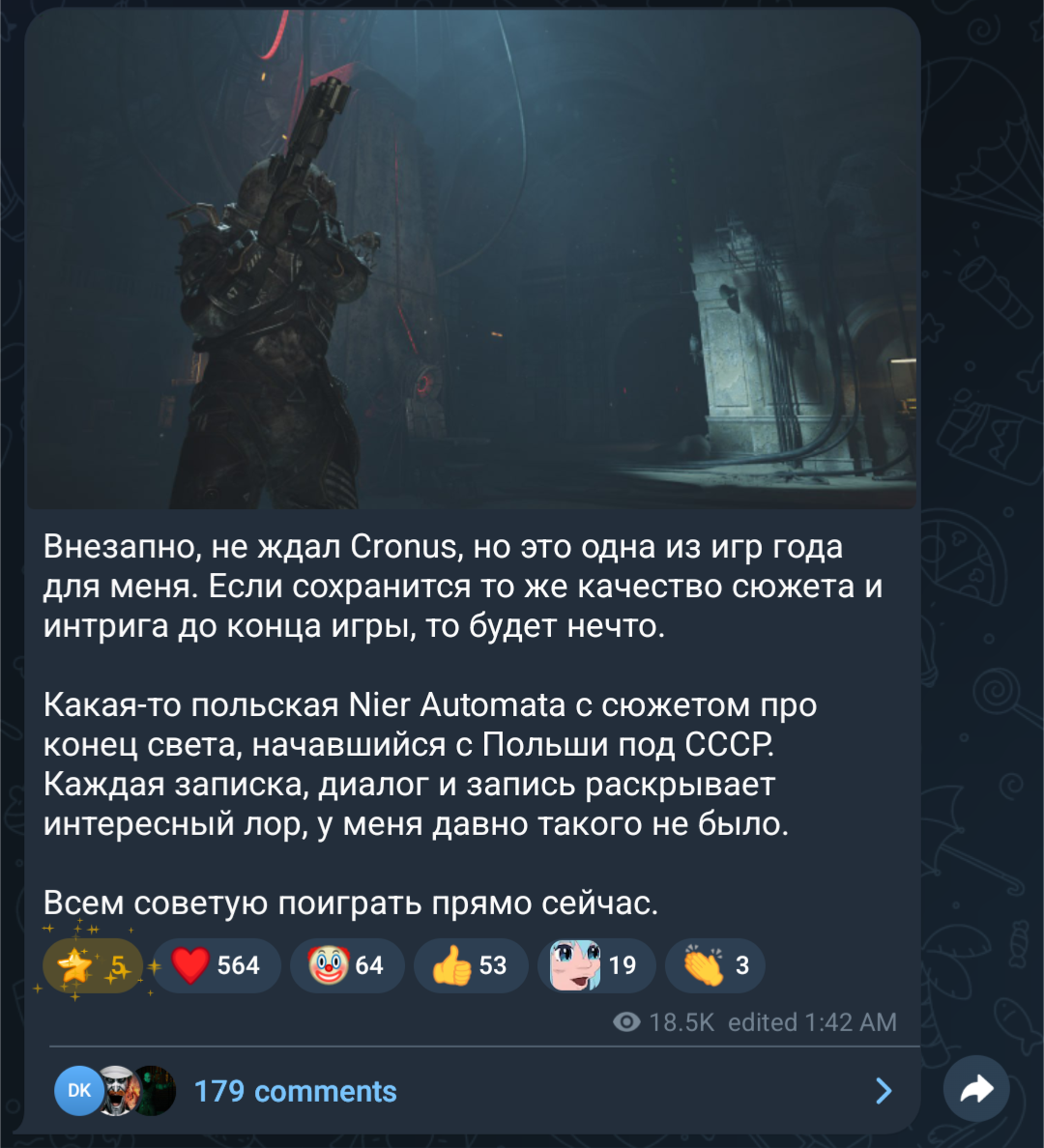 Ну, ведьмак 3 дерьмо после очень вкусных 1 и 2 частей. Киберсреньк стал хорошим только после аддона, и то просто хорошим. Ждать бы я от сиди прожектов (тоже не поляки по твоей логике, кек) ничего уже не стал. Блуберы сделали неплохой ремейк. А кронос какая-то шушера, надеялся на дед в космосе, а тут