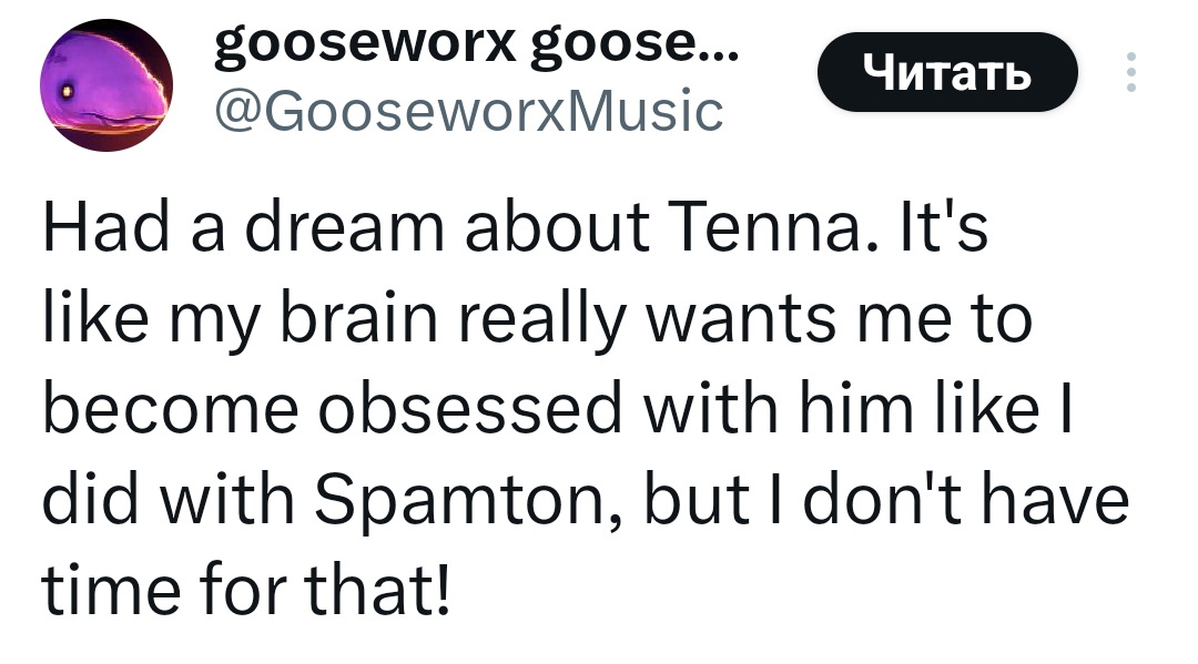 Я вообще хуй знает что там могло быть. Я понимал, что Теле Шоу должно быть, какие нибудь сценки там, но примерную реализацию не понимал. Я вообще думал что мы будем противостоять Тенне аля королеве из второго чаптера. И концерт будет что бы привлечь внимания тёмных к нам и нашей борьбе. По итогу... Ну слушайте, так даже лучше наверное. Тенна ведь просто телевизор которого перестали смотреть и он чувствует себя ненужным. С чего ему быть плохим? Очевидно что там будет теле шоу где он не захочет отпускать лайтнеров.