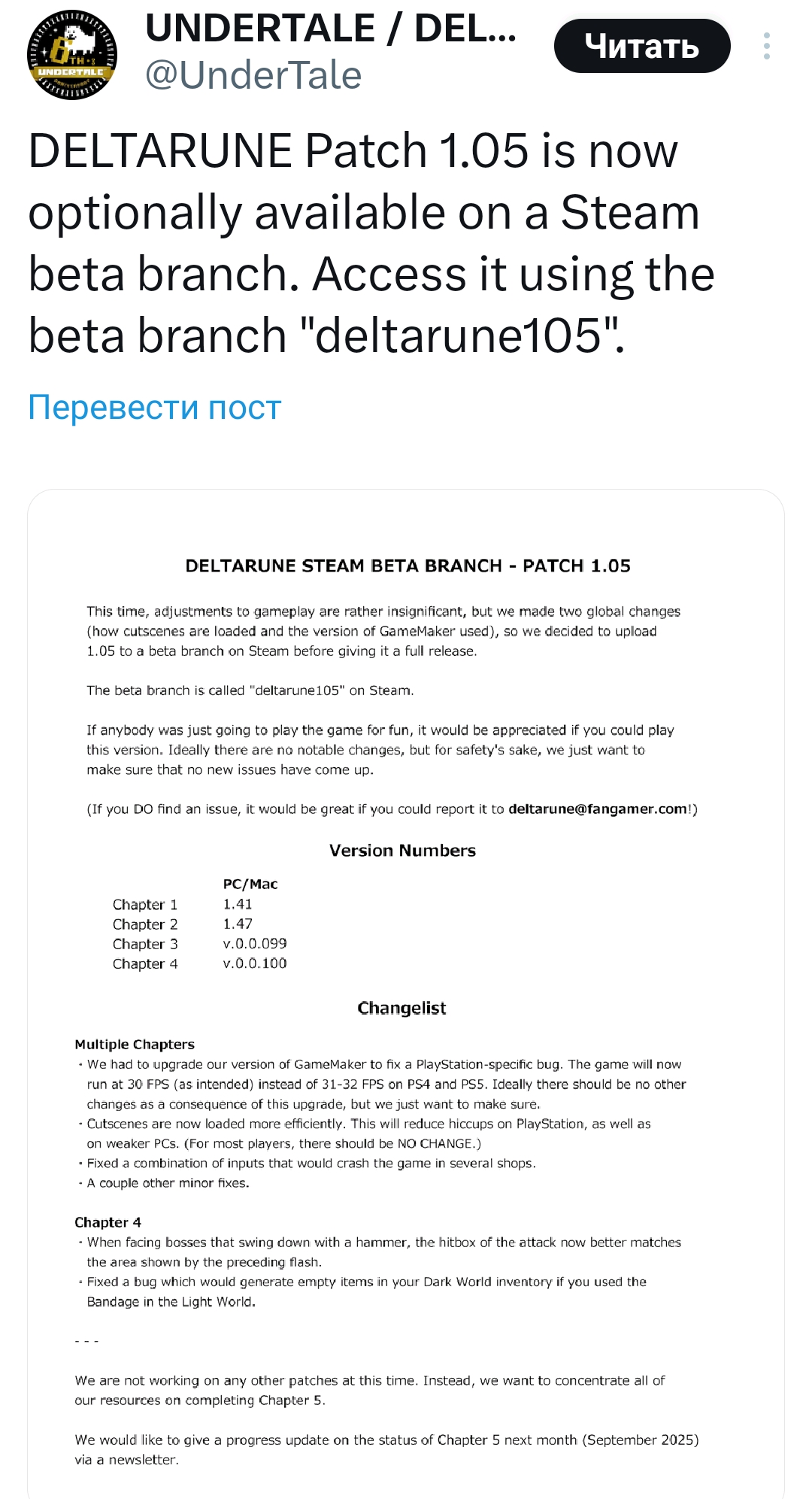 5 глава deltarune выйдет в 2026 году