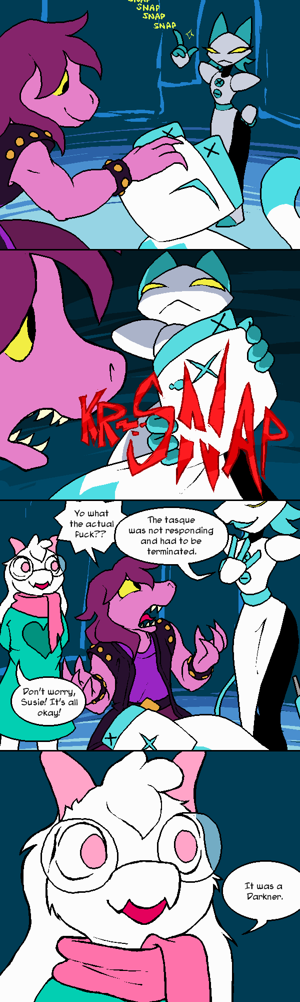 И вообще все эти срачи по поводу дельтарун это такой бред. Есть просто те кто начал играть в андертейл на фоне хайпа, тех кто кто проникся игрой и радовался дельтаруну и тех кого просто заебало. Мне от скуки и от того, что нравится Тоби Фоксовщина дельтарун зашел. А есть те, кто когда то там поиграл в андертейл, ему или ей даже понравилось, но в дельтаруну они так и не играли. Как минимум потому что не знают что такое есть или не сильно то и стремились хотя слышали. У тришки бум просто передоз андертейла и он ассоциируются только с заработком на каком-то давнем увлечении. Ладно. Я чёт сам вилять начал. Но могу сказать что те, кто не оценил дельтарун, никогда и не были фанатами андертейла. Ну серьезно. Потому что это буквально тоже самое, хотя и есть различия. И про вторую главу которая ей не зашла тоже странно. Мне вторая глава наоборот зашла больше первой и до сих пор ее считаю очень охуенное и даже сейчас наверное лучшей. Огромная, лорная, классная музыка, тема прикольная, секретный босс, локации. Охуенно было. Особенно финал где тебе надо было биться в мехе которая спроектирована из твоего рофло чертежа прошлой главы. Это было охуенно.