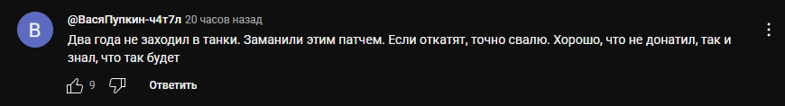 Ну наслаждайся, пока 3го числа все это в тыкву не превратится. Я надеюсь, что у лесты есть хоть капля совести и они не откатят вообще все изменения из разворота, бросив танкистам кость хотя бы в виде +1 уровня.