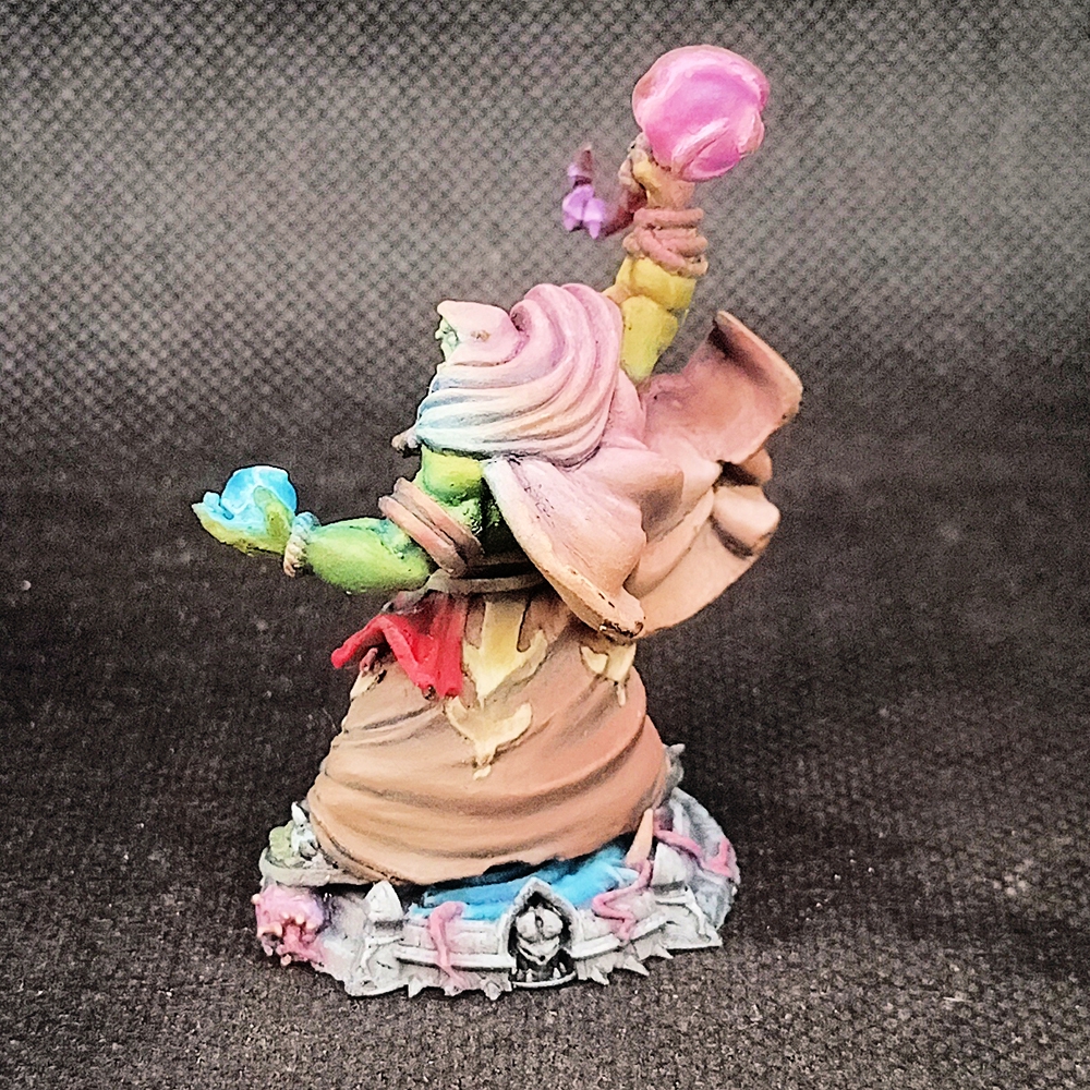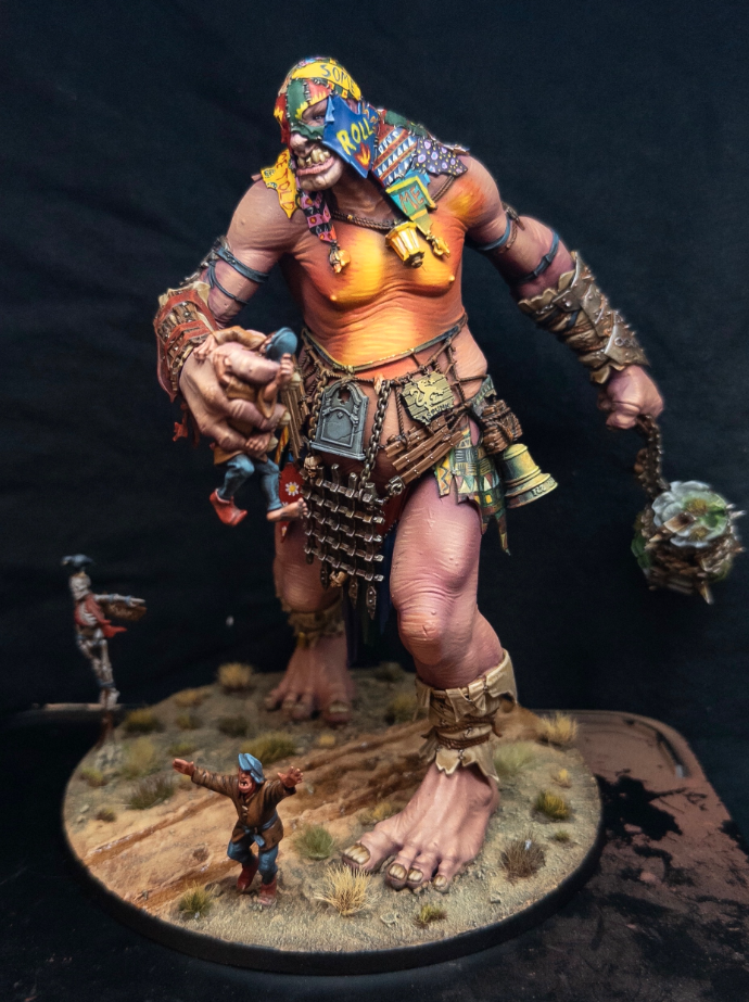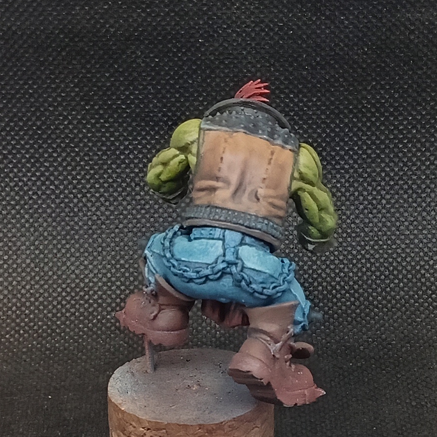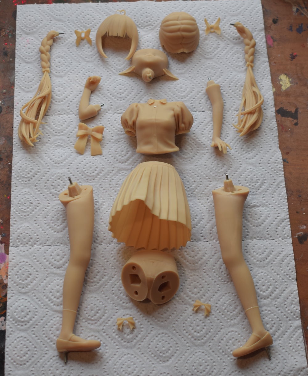 Терпи маленький. Буквально. Я комочки вижу, видать не выждал высушку слоя, начал наносит второй и полумокрая краска поднялась и скомкалась. А так нормально в принципе. Контраста бы побольше, нужно юбку в более тёмный коричневый покрасить, типо шоколадный, а то сзади вообще не читается. ОСЛ кисточкой делал?