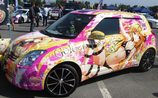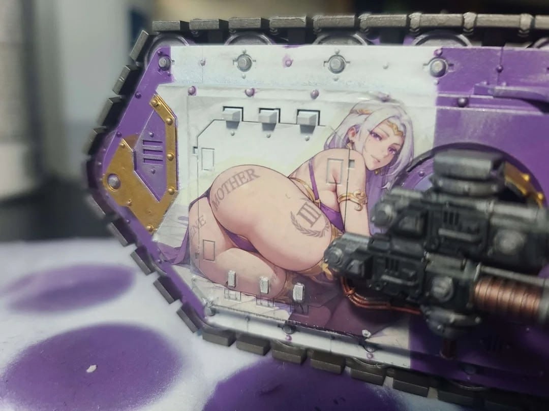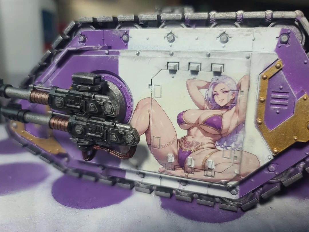 Плёнку для картинок купил, аэрограф купил, краски купил, а рисовать не купил. Убрать сочную аниме жопку и будет игровой покрас из 10.