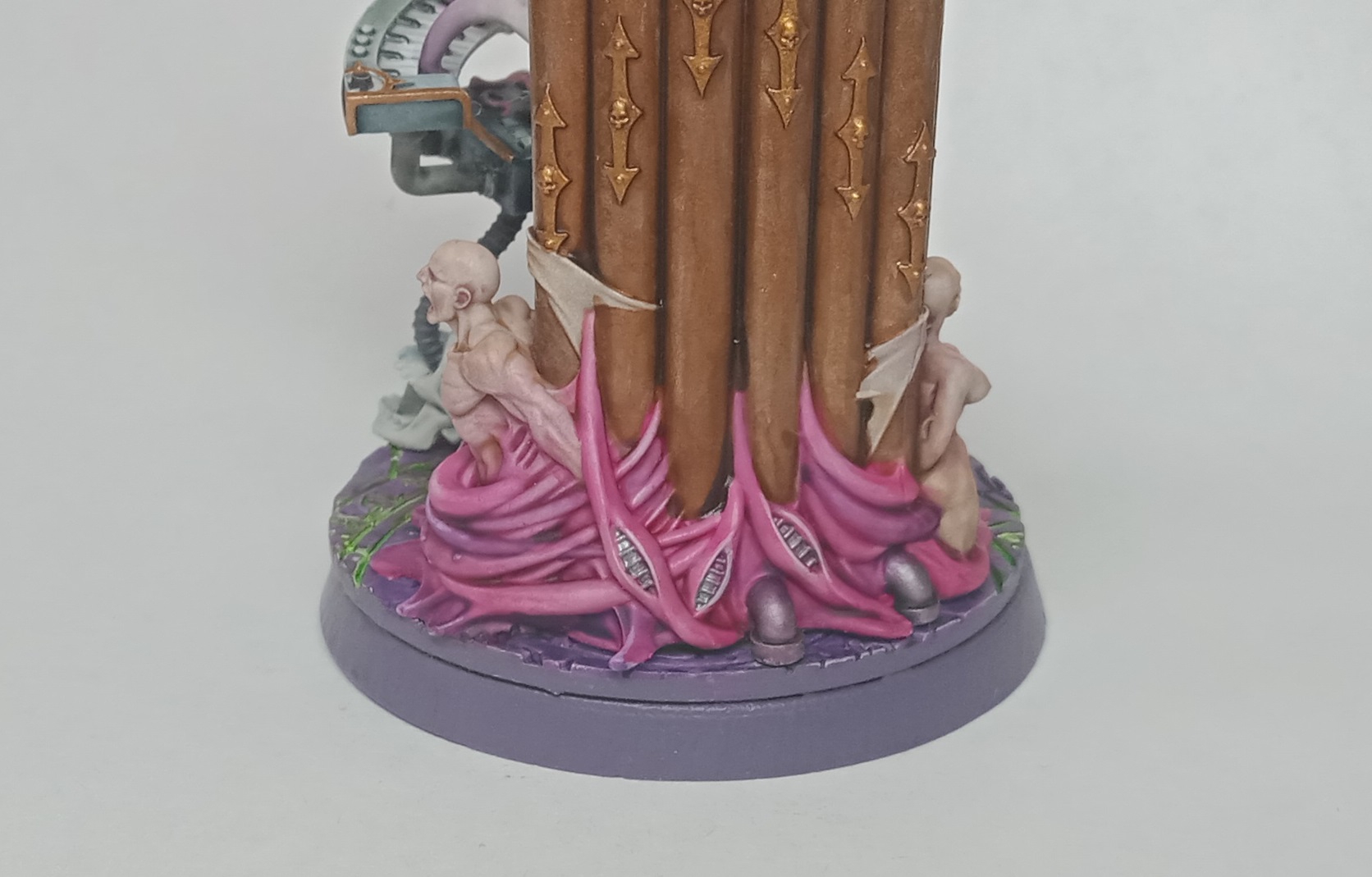 Покрас не очень. Драйбраш недостаточно драй и есть следы от краски. Клёпки почему то пролиты розовым и неаккуратно при этом. Золото растеклось. Обвод декали какого то хуя жёлто-белый, хотя модель танка явно в цвете белого титана. Пушки без драйбраша и каких то акцентов, тупо базовый цвет нанесён. Миниатюры норм, но опять же не вижу контрастов, хайлайтов и прочих деталей, только, безусловно пиздато замешанный, но всё же просто базовый слой. Чё з базами?