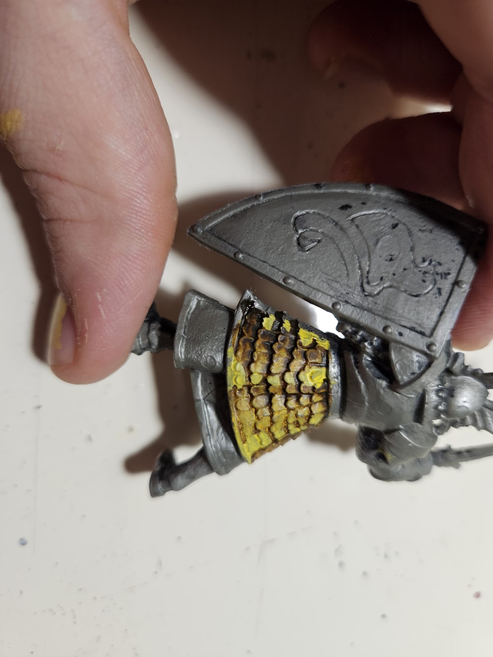 Высветлять не получается совсем, закрашивает. Гайд говорит. что я должен цепляться кисточкой за выступы и этого не получается. А краска на грунт ложится и правда гораздо лучше.