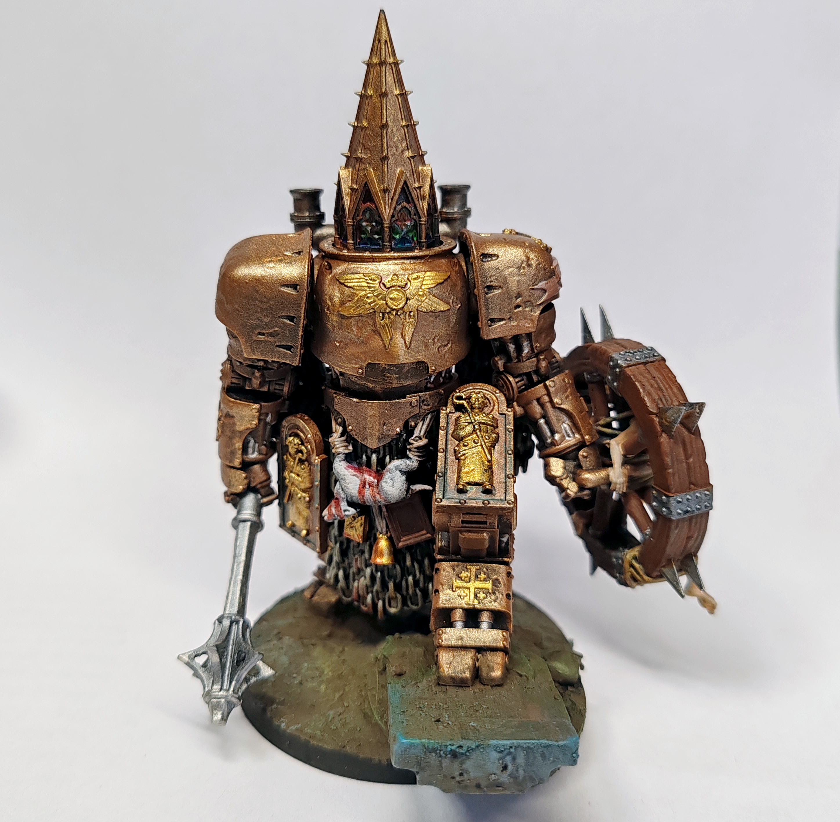 Я вот думаю взять шлем, но не шипастый. И под рюкзак с хало и покрасить в золото. Можно в битсах поискать вычурный шлем, но не такой большой, чтобы за хало не цеплялся.