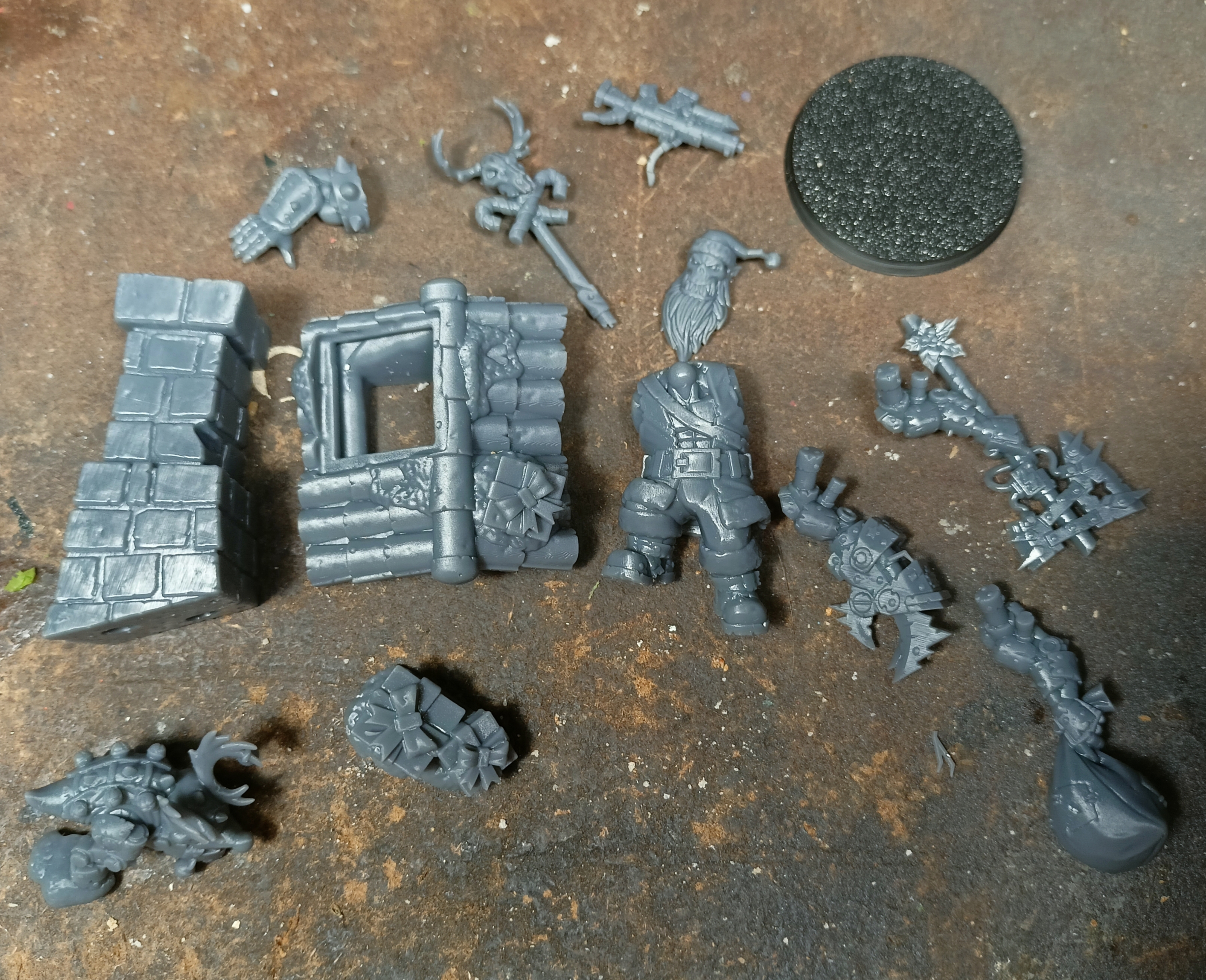 Че короче, лесенки, печать хоть и не мыльная и лесенки слегк сглаженные, но есть и везде, проблема именно этой миньки в руке с вариациями, либо мешок либо клавса либо биг чоппа в том, что площадь крепления руки на туловище (плоская как в старой члененке) почему-то больше, чем площадь крепления на самих руках. Хотя есть и плюсы - где надо сделали пазы и штырьки, другая рука у примеру к трубе крепится и к телу, там штырьки есть как бы направляющие. Можно ебануть подарки дополнительно, а сквига как отдльную миньку, если подрезать, можно так поставить.