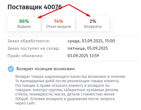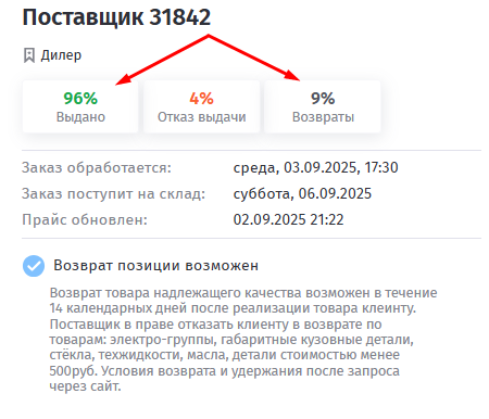 Смотрим на процентаж отказов, а не отказ выдачи(это поставщик отказывает отгружать по причинам из разряда закончился товар/пересорт и тп)