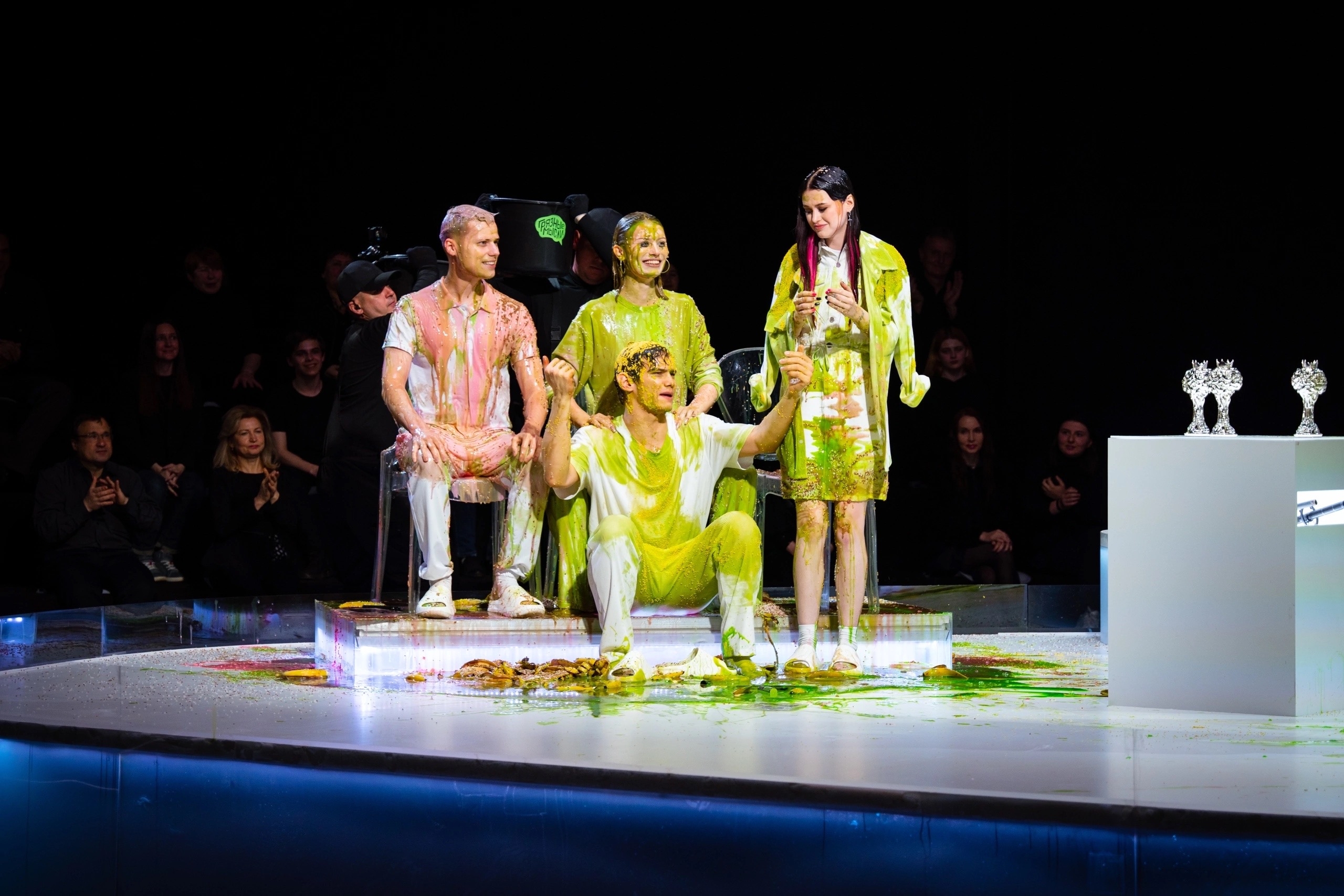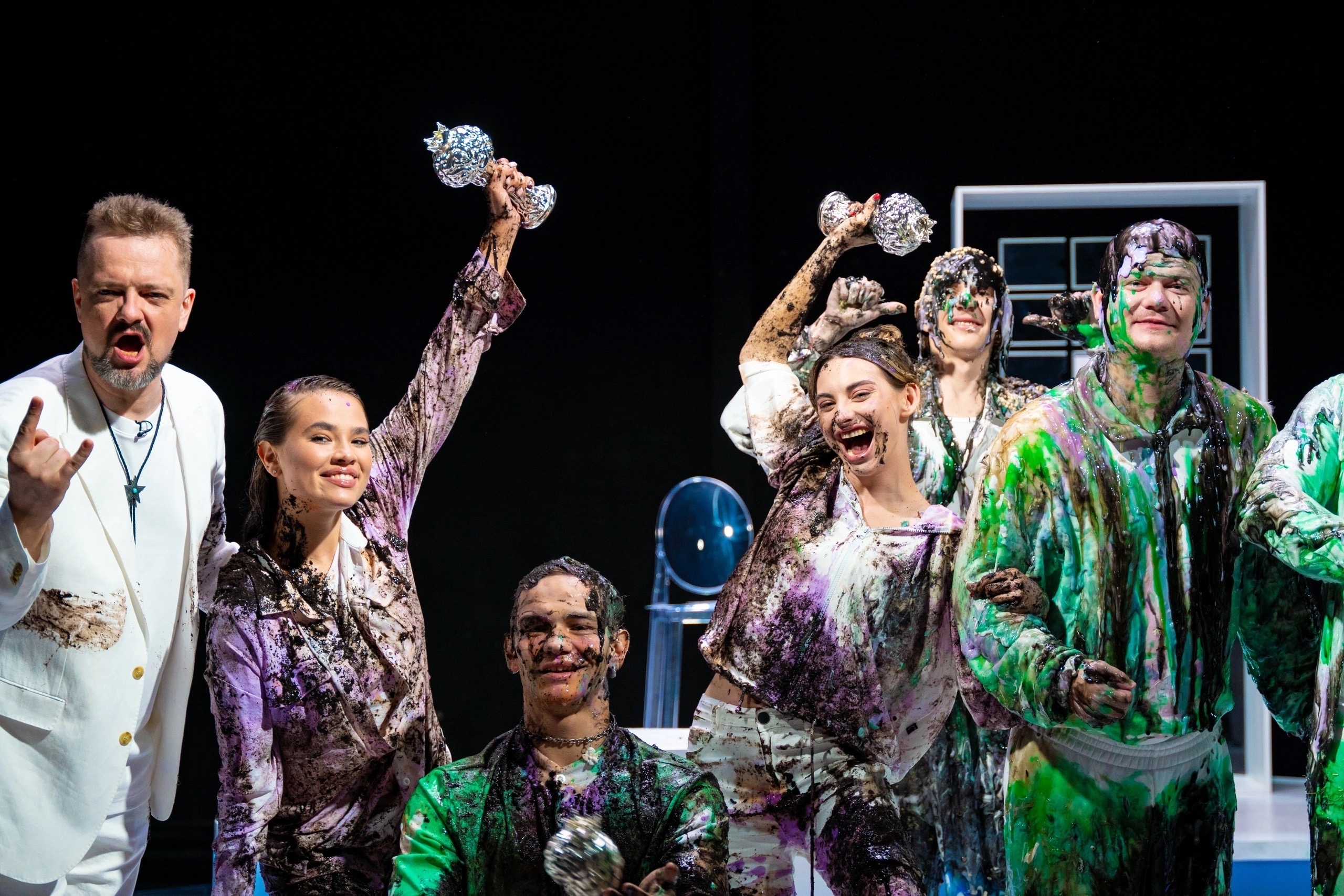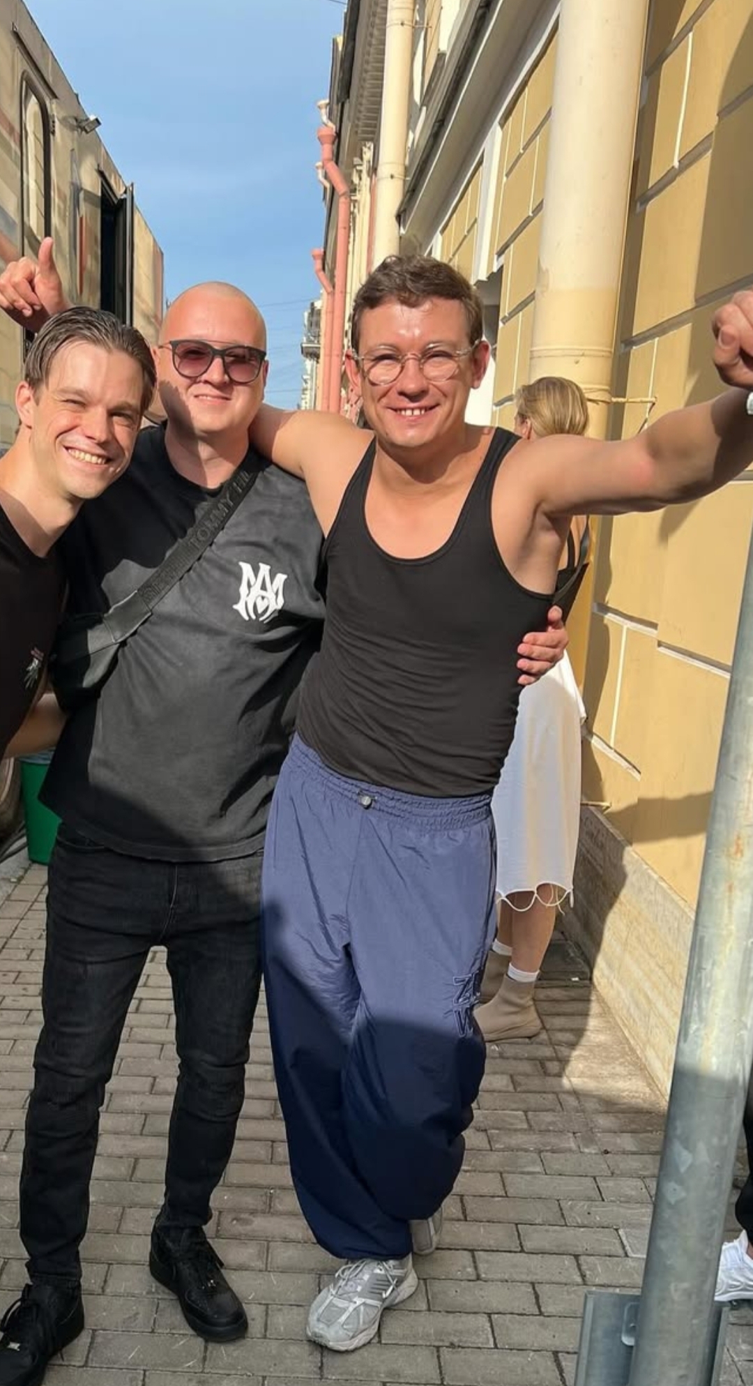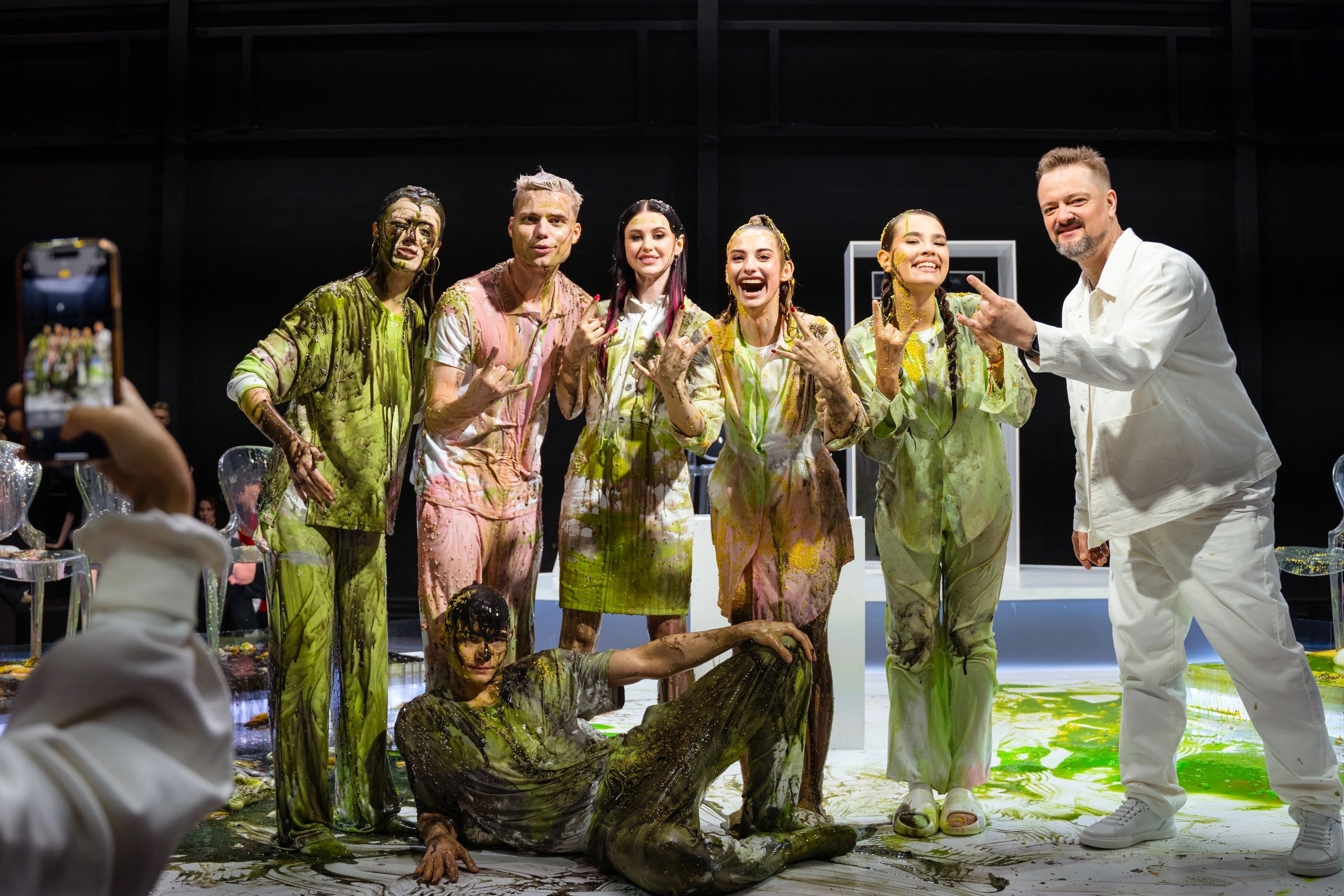 Он раньше всех съебал на съёмную хату, чтоб вино в холодильник поставить, ванну наполнить, на кровать лепестки роз насыпать, открыть ведро с вазелином и ждать поддатого блевончика. Вот такая глиняная романтика)