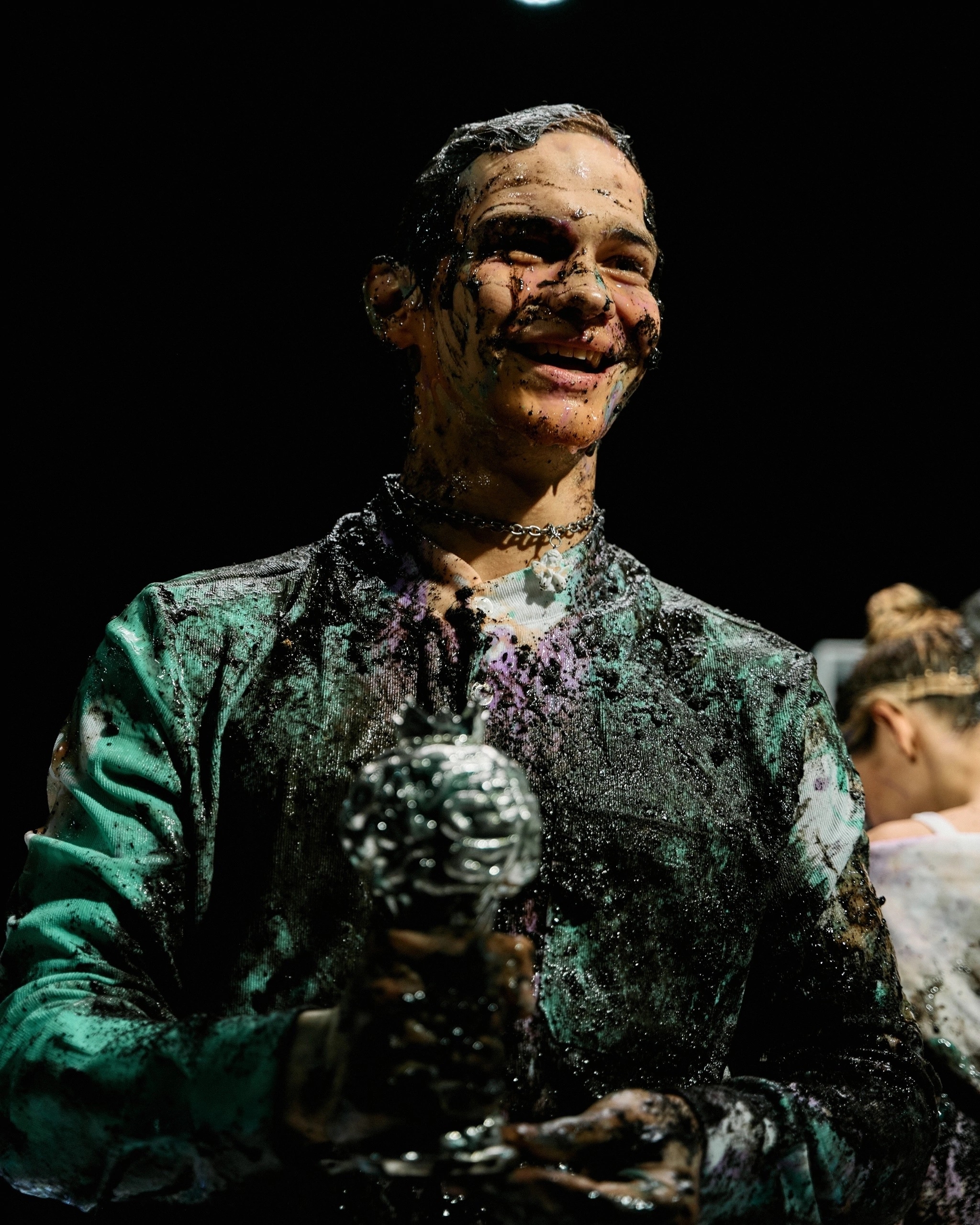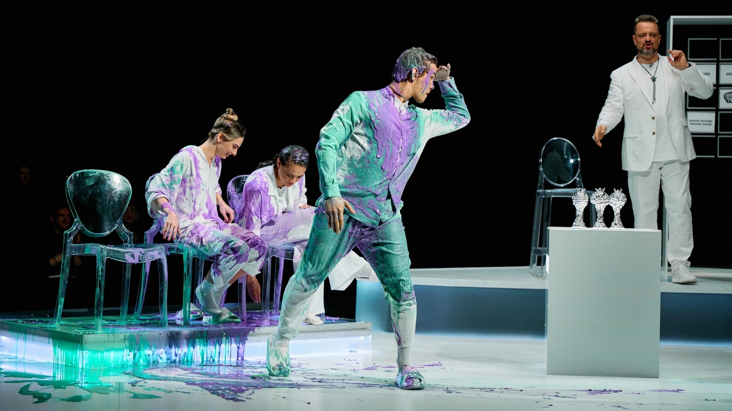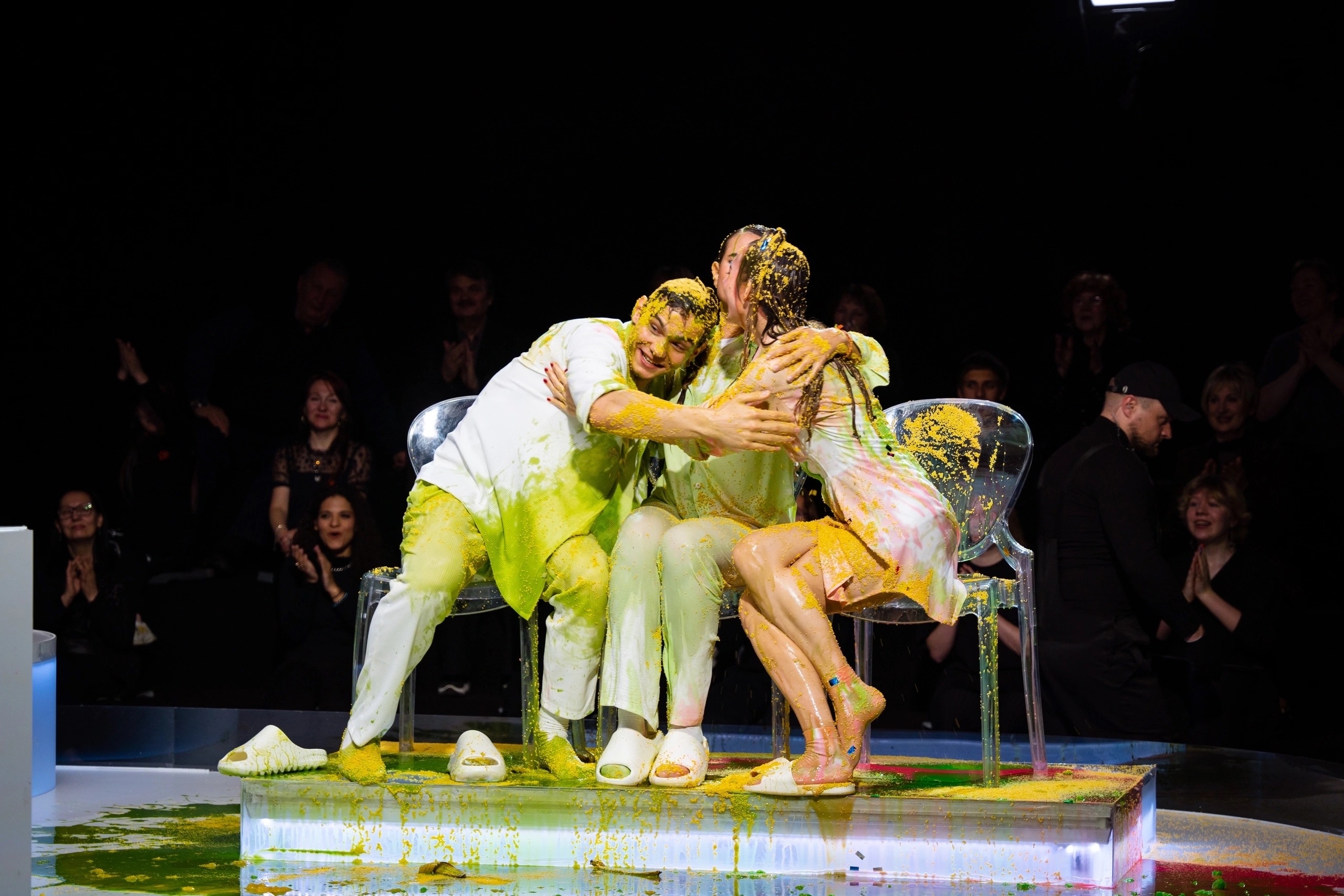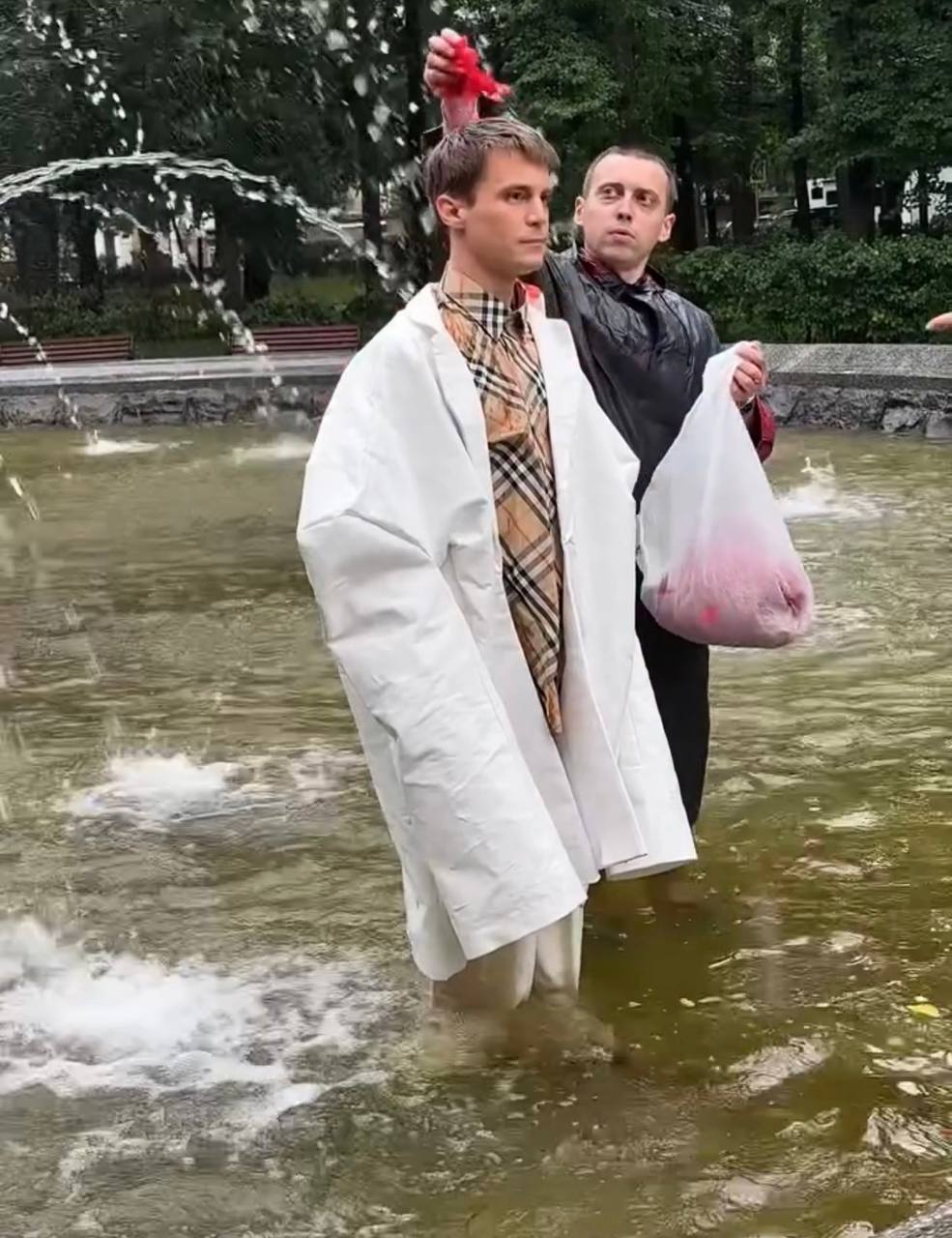Он раньше всех съебал на съёмную хату, чтоб вино в холодильник поставить, ванну наполнить, на кровать лепестки роз насыпать, открыть ведро с вазелином и ждать поддатого блевончика. Вот такая глиняная романтика)