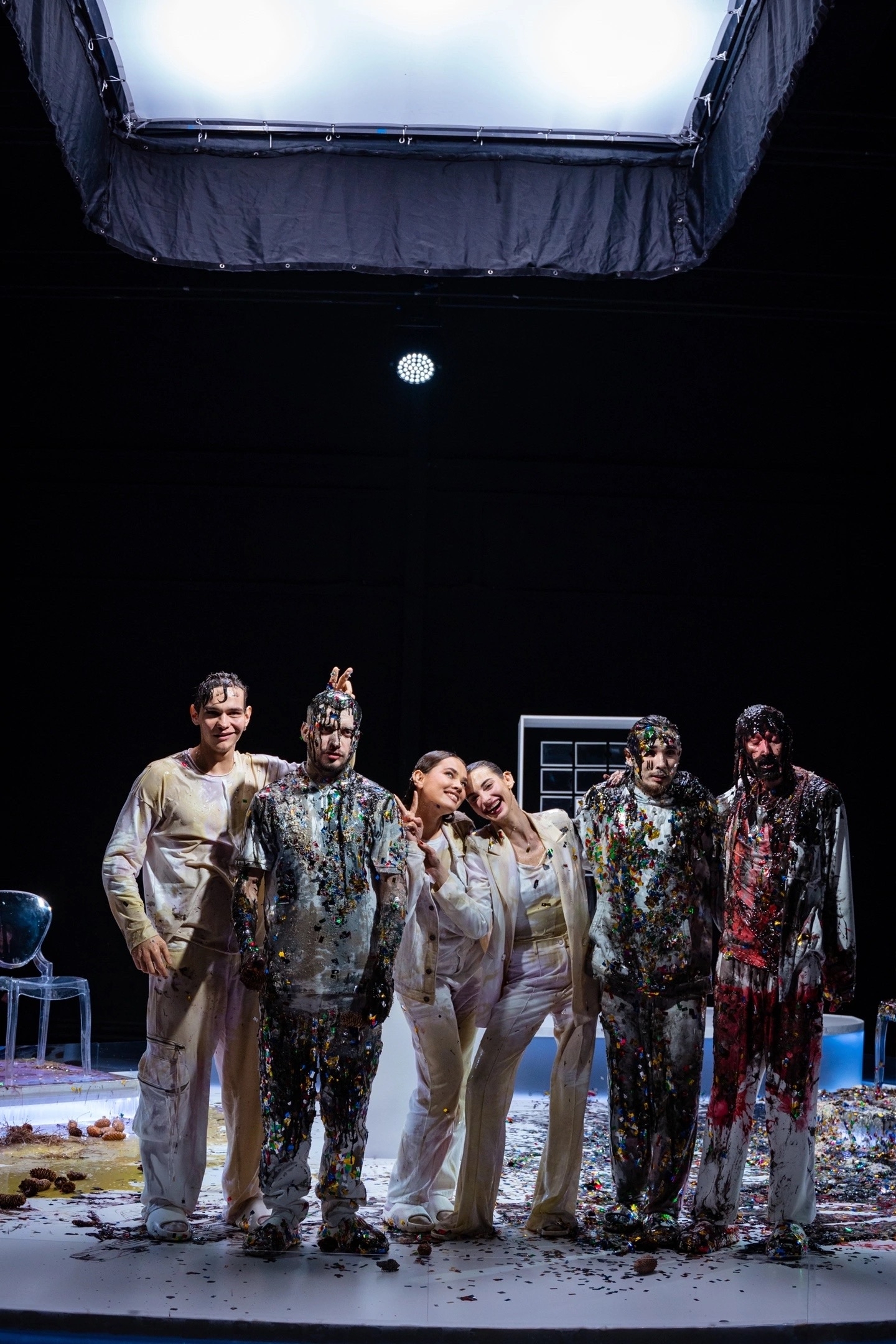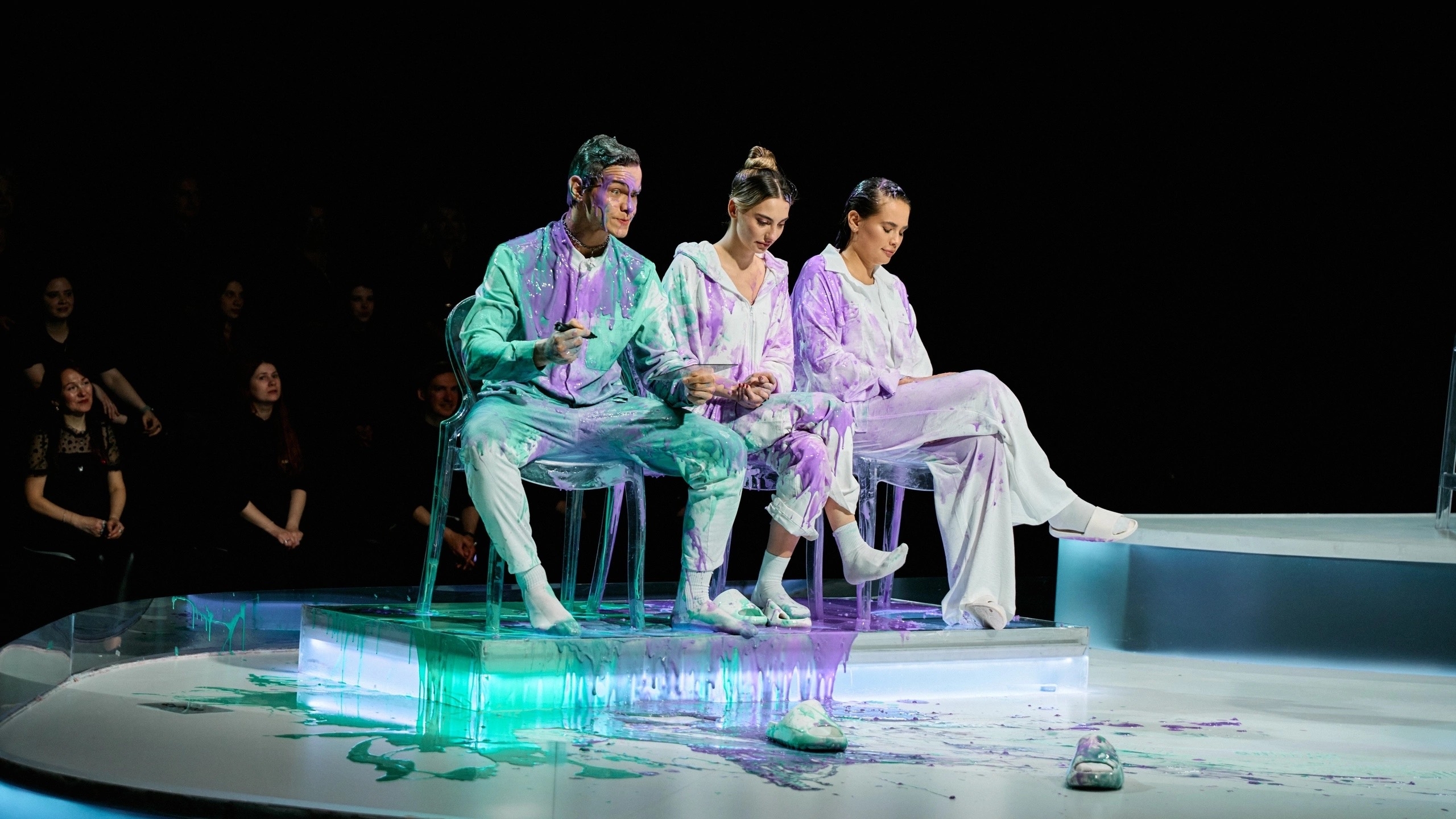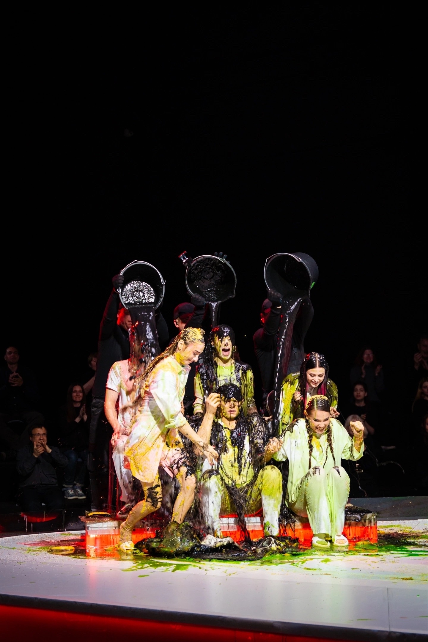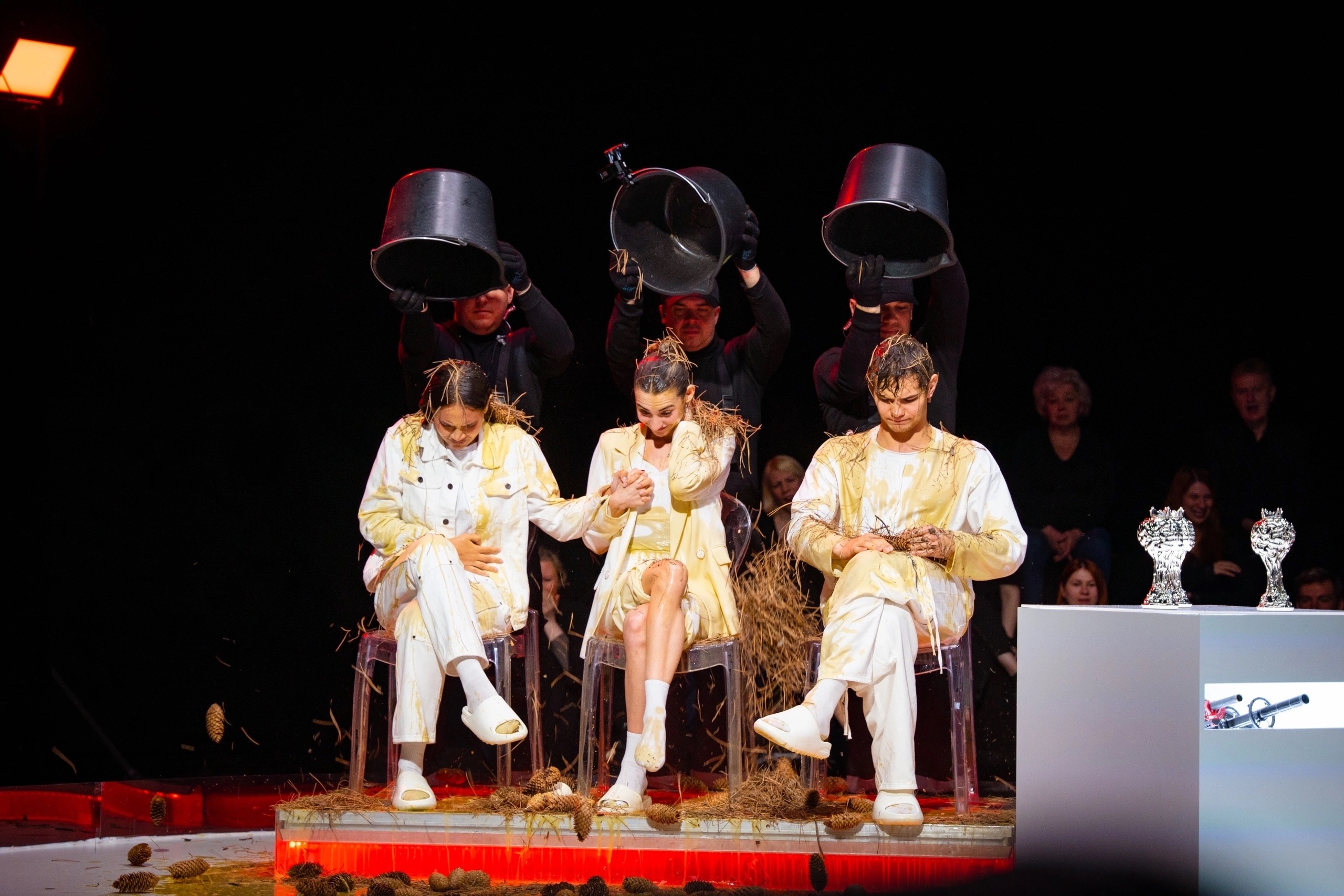 Он раньше всех съебал на съёмную хату, чтоб вино в холодильник поставить, ванну наполнить, на кровать лепестки роз насыпать, открыть ведро с вазелином и ждать поддатого блевончика. Вот такая глиняная романтика)