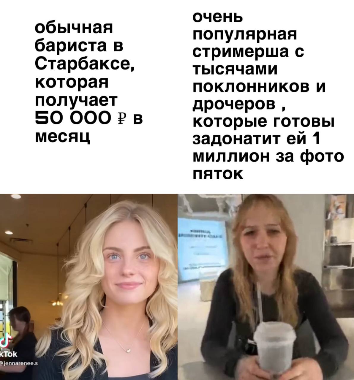 Ну одна попала в поток и в тайминг зарождения новой сферы, выйдя из зоны комфорта, по итогу реализовалась и стала звездочкой, а другая предпочла пойти баристой, зато стабильно.