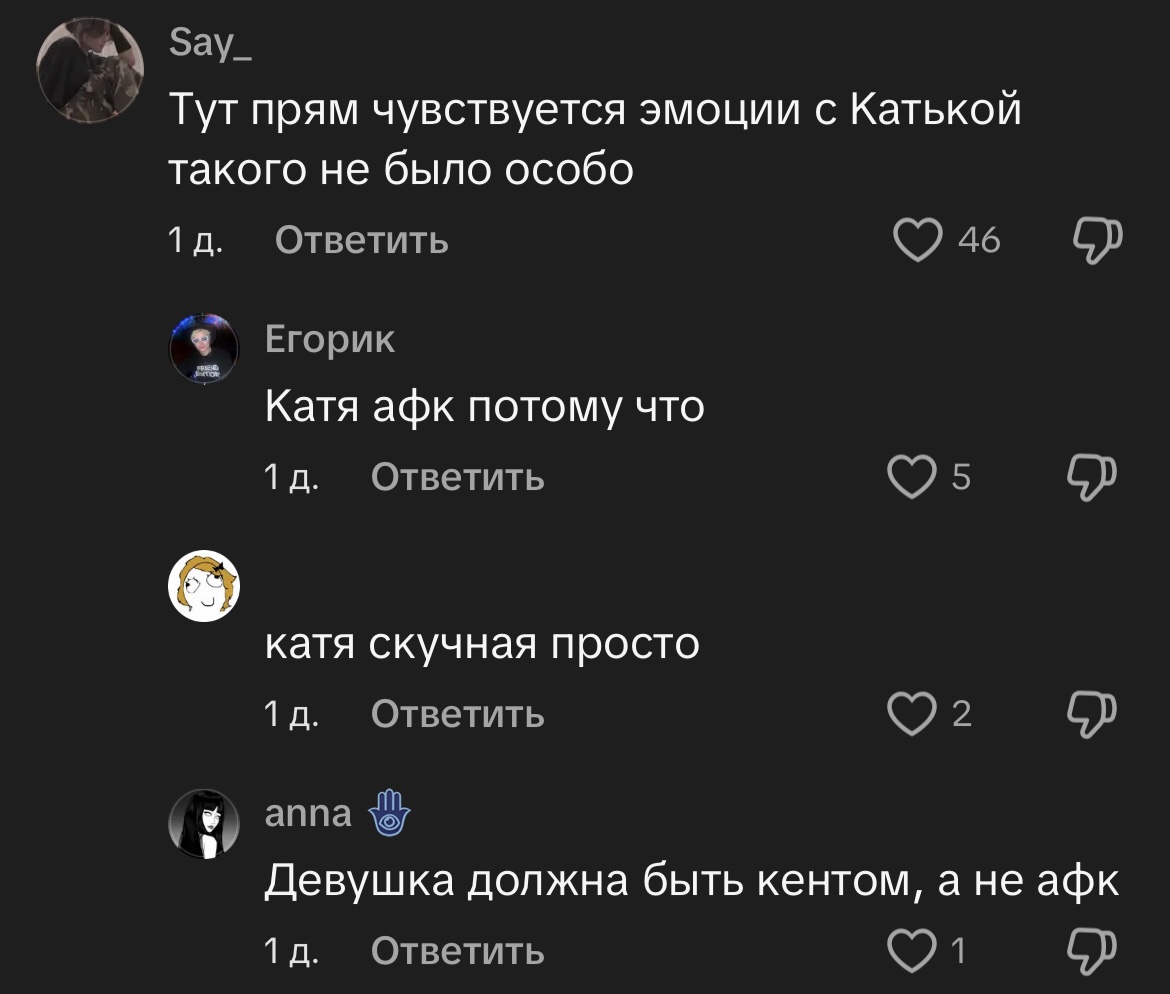Бля она хоть раз с Катей общалась в жизни? Или в чем приеб вообще к ней, ладно бы они подругами были