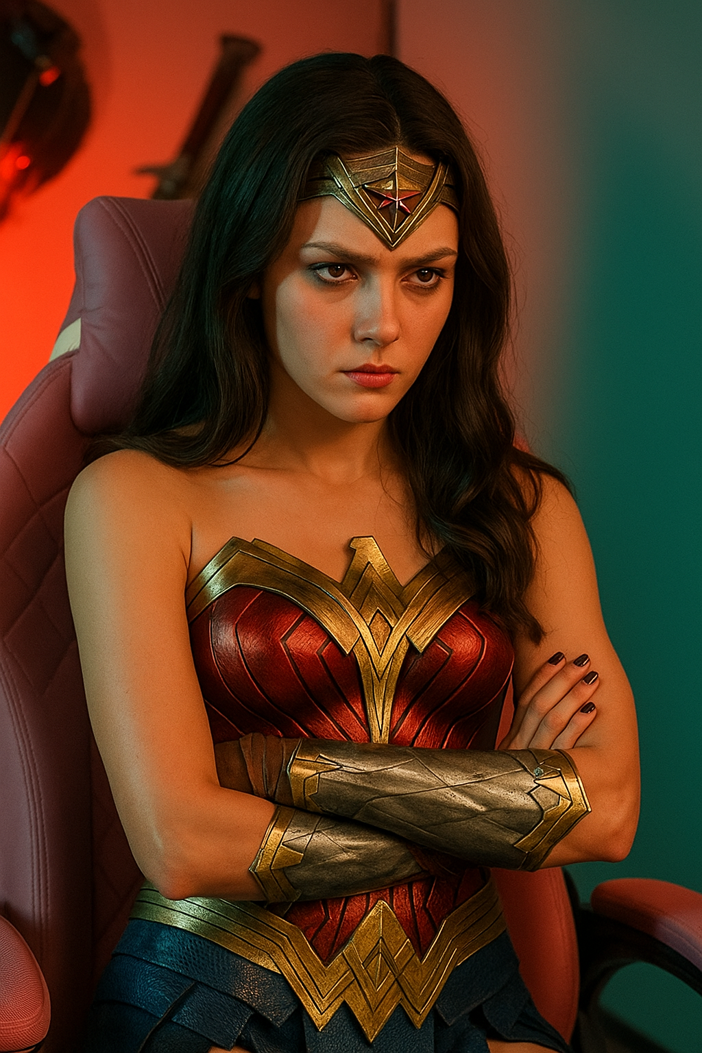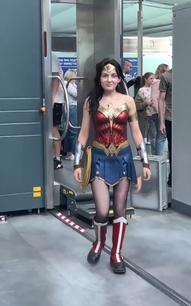 Мне она не нравится в этом костюме. Толщины тела и рельефа мышц совсем не видно, и туфли идиотские максимально. Простые блузочки и юбочки на ней намного лучше сидят.