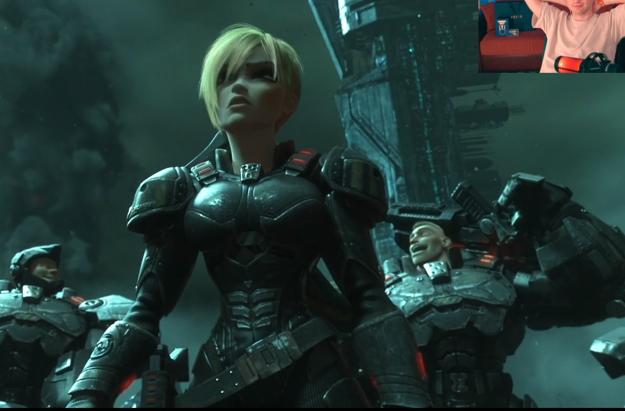 Можно нейронкой обработать. Убрать людишек на фоне и валькирию справа, добавить сайфая, типо это конвеер производства репликантов/синтов, и когда она выходит, чтоб голос сказал "ваша альтушка готова".
