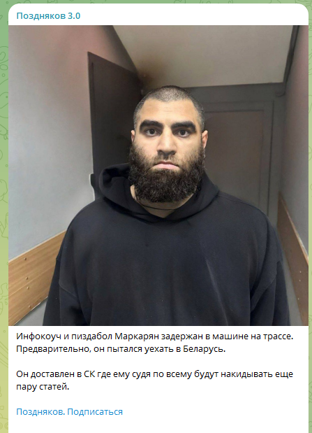 А вы не думаете что это многоходовочка просто такая у Маркаряна? Договорился с друзьями своими чтобы в СИЗО посидеть месяц два, а потом выйдет такой весь типо жертва режима плюс хороший инфоповод, все обсуждать будут