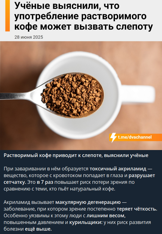 именно растворимый кофе раньше пил, так что подтверждаю данные факты. хотите видеть - отказ от кофе