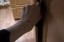 Если бы он стоял, то кепка была бы зажата в двери на уровне груди или чуть пониже, чтобы было удобно её взять.