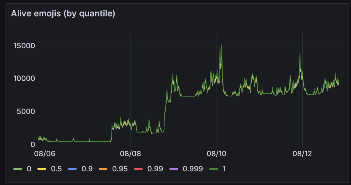 Максимум было 15068 эмодзи на доске одновременно и было это 10 августа в 3 часа ночи