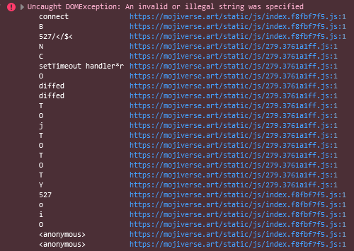 В консоли браузера на ПК ошибка "illegal string".