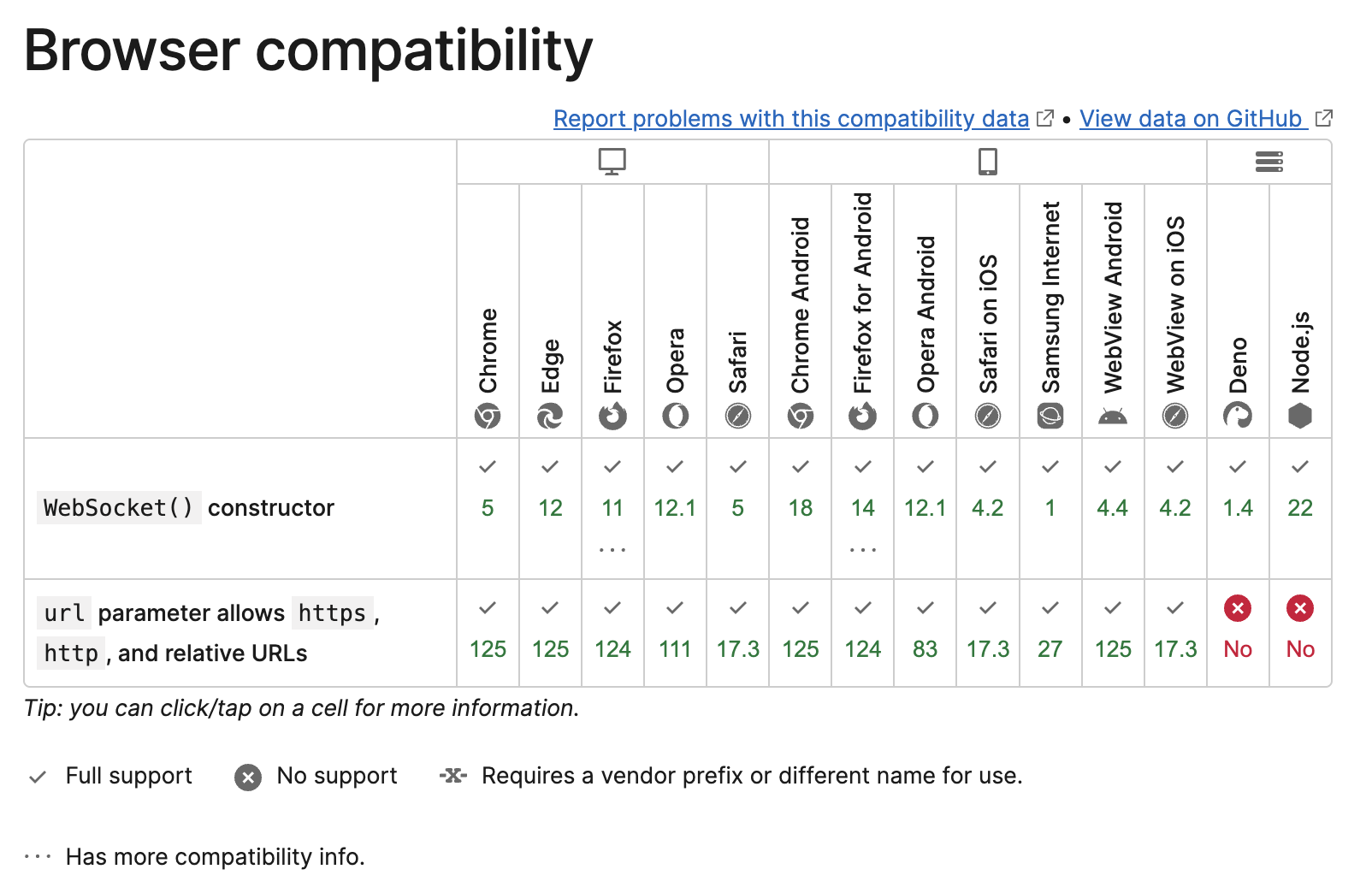 Потому что поддержка относительных url подключений веб-сокетов появилась позже, чем сами веб-сокеты. Смотри вторую строчку в таблице. Если твой браузер старее, то там не работают относительные url для веб-сокетов, надо всегда указывать абсолютные.