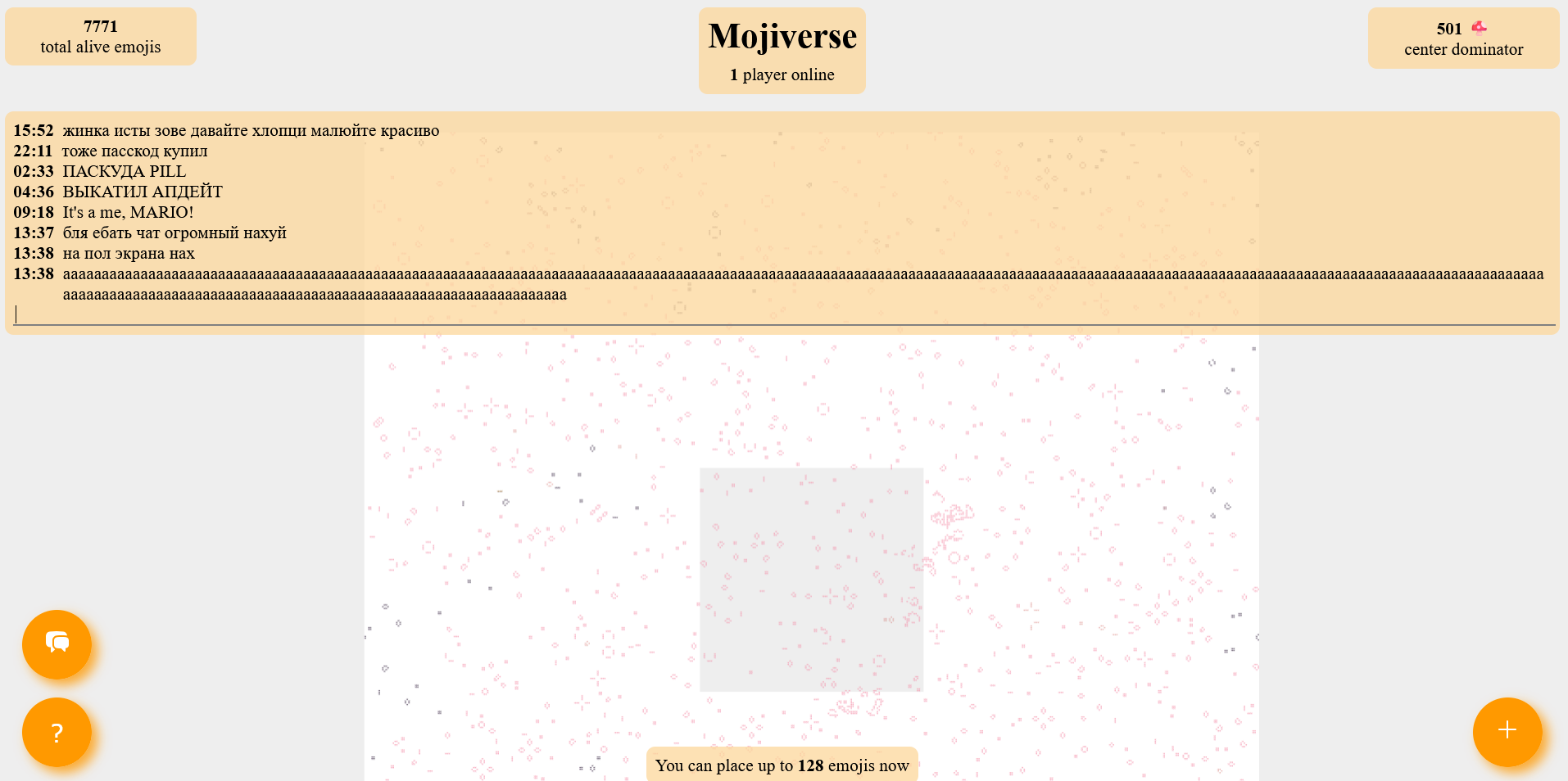 Для защиты от вайпов у каждого игрока есть баланс эмоджи, которые он может поставить и который постепенно растёт пока вкладка с игрой открыта и активна.