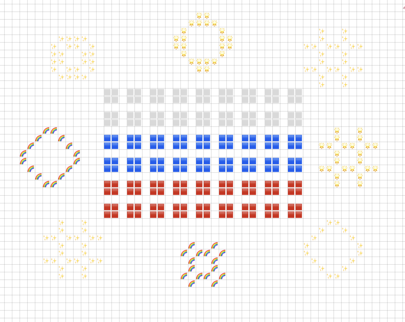 Но клетки то с трудом умирают, так что получается 26 это максимум, а судя по тому что можно ставить любые эмодзи, то юзеров меньше 26. ну итого где то 15 наверное уникальных