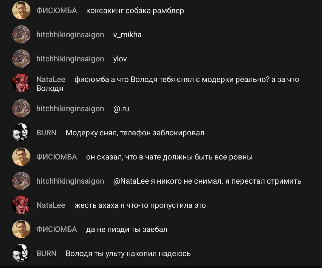 Вот как раз на той трансе и флексил, когда ему челик из чата (не помню кто) прямо сказал "заебал, ты ведешься на хуйню". Тут же началось "ну не про тебя конкретно да да, но вот скинуть на почту какие женщины у меня были и у тебя, и вот стало бы ясно, ну без комментариев ну вот и фсйо да". Типикал выебонщик-понторез валодя внаш.