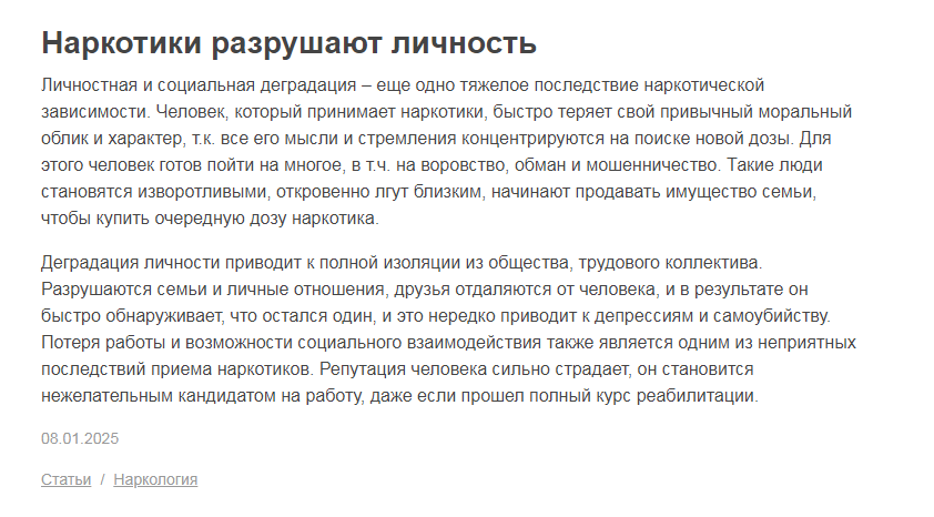 >следующим же словом описывает свою зависимость от запрещенных веществ