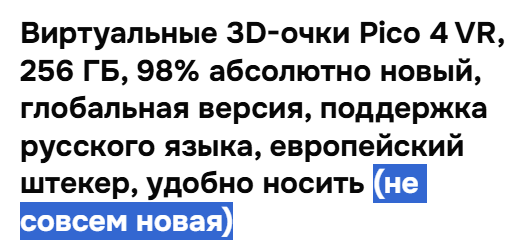 Пару лет назад у друга дома играл в квест (бит сейбер и прочие ритм игры и в хл аликс еще). Понравилось. Потом погуглил цены (60к, нахуй) и забил. Сейчас увидел на лохито Pico 4 256 гб за 26к. Пишет игор поставлено дохуя, надевай и играй. То что мне нужно, йобана.