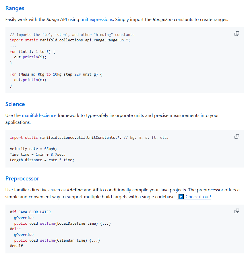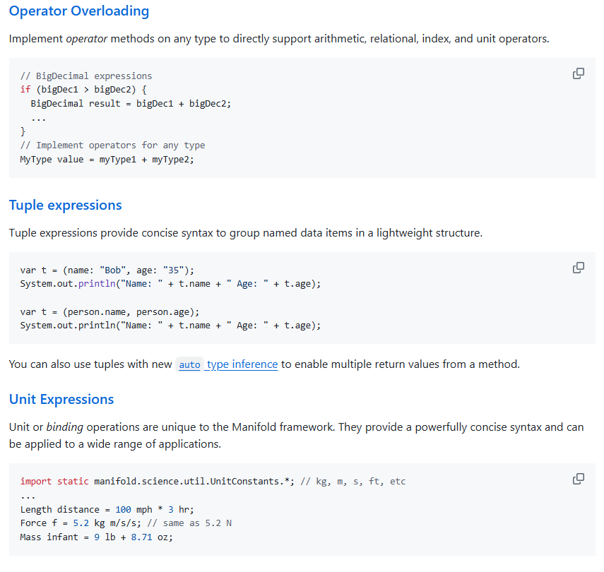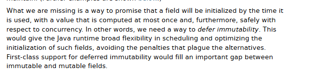 >In the future, this programming model will support new Java Platform APIs, such as classes that encode different kinds of integers and floating-point values, and new Java language features, such as user-defined conversions and mathematical operators for domain values.