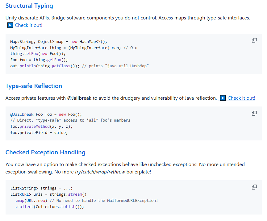Мне еще нравится, что они вообще все взаимодействие с java запихнули в io монаду. Примерно как котлин, они тоже сначала весь код из жабы сделали недоверенным, мол а мы вот не знаем, есть ли у вас там null или нет, ставьте знаки восклицания. Потом они съехали с этого и просто сделали доверенным его - главное удобство. Посмотрим как тут выйдет по итогу.