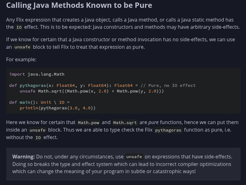 >Caveat: Flix sometimes has to box values on the boundary between Flix and Java code -- e.g. when calling a Java library methods that requires a java.lang.Object due to erasure in Java.