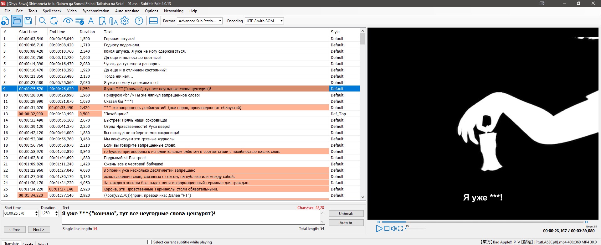 Когда я открыл субтитры - I.D.A, у меня появился главный вопрос, что это за хуйня? Я конечно никогда не таймил, и не писал сабы, но увидев комментарии сабера - пришел в шок (1 скриншот, 9 строка), я решил сразу же проверить, так ли это или нет, я включил рандомный видос в программе. и ни сверху, ни снизу, нигде либо ещё - ничего не оказалось, следовательно, моя догадка оказалась верной. Следовательно, нахуя это там? (4 скрин)