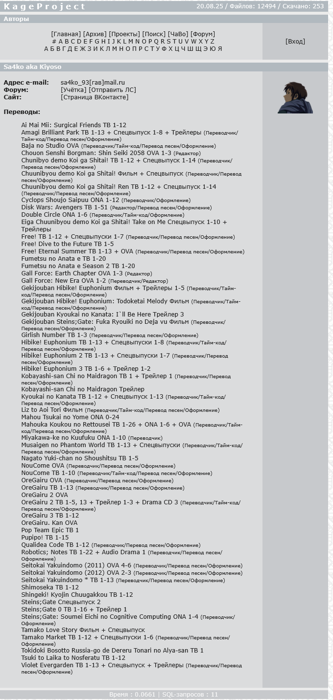 Сорян, я перепутал с Женя ака Зуб. А этого же сачка я помню по переводам тайтлов от кёани, так себе переводы по качеству банальной вычитки, не сравнить с лицензионными вроде Reanimedia или Wakanim; или же с любительскими вроде Dreamers Team.