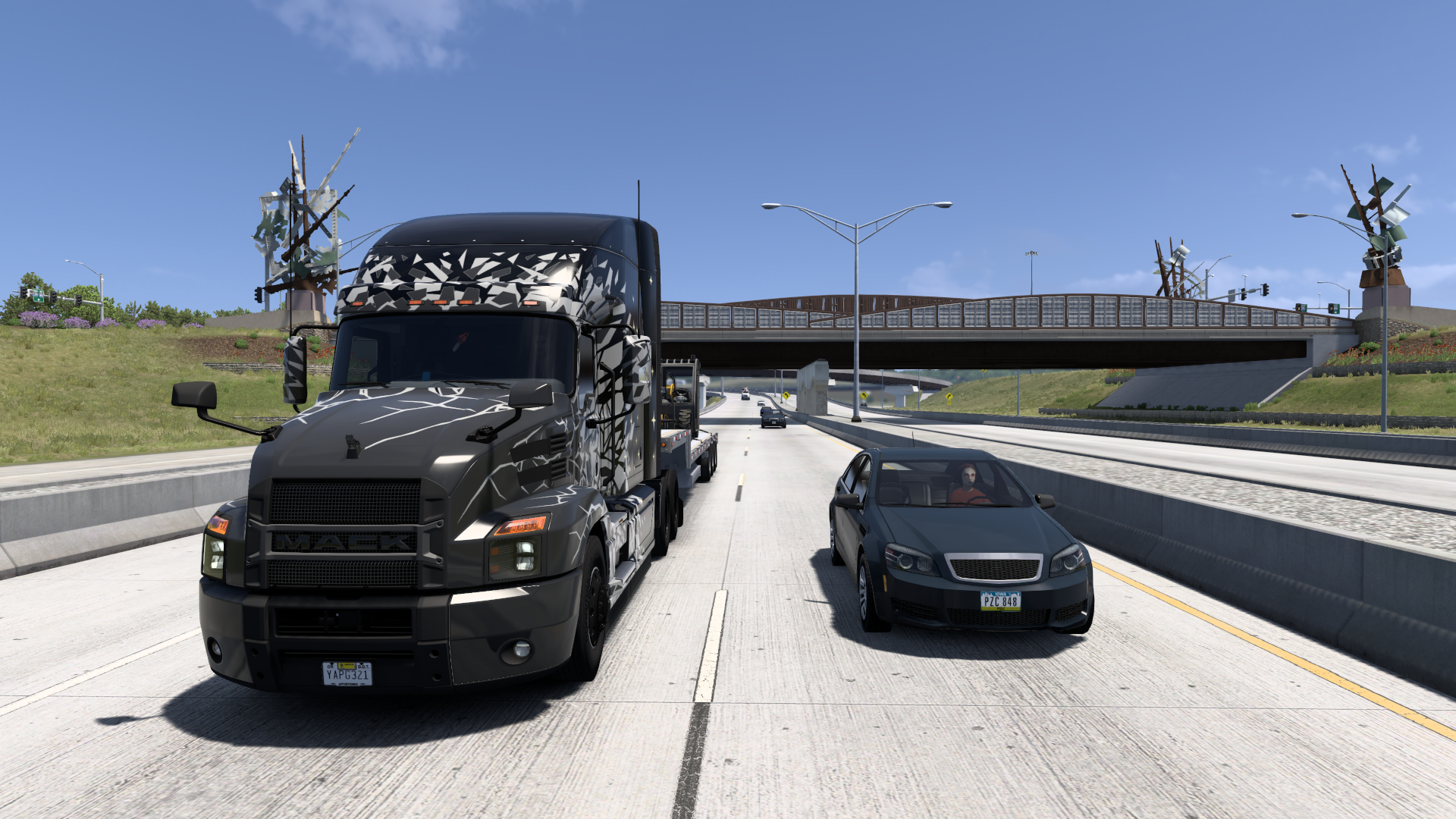 Этот Диамонт - нечто среднее между терминаторным Фреджлайнером и 352-м Питербильтом. Как и полагается с могильной плитой вместо бампера.